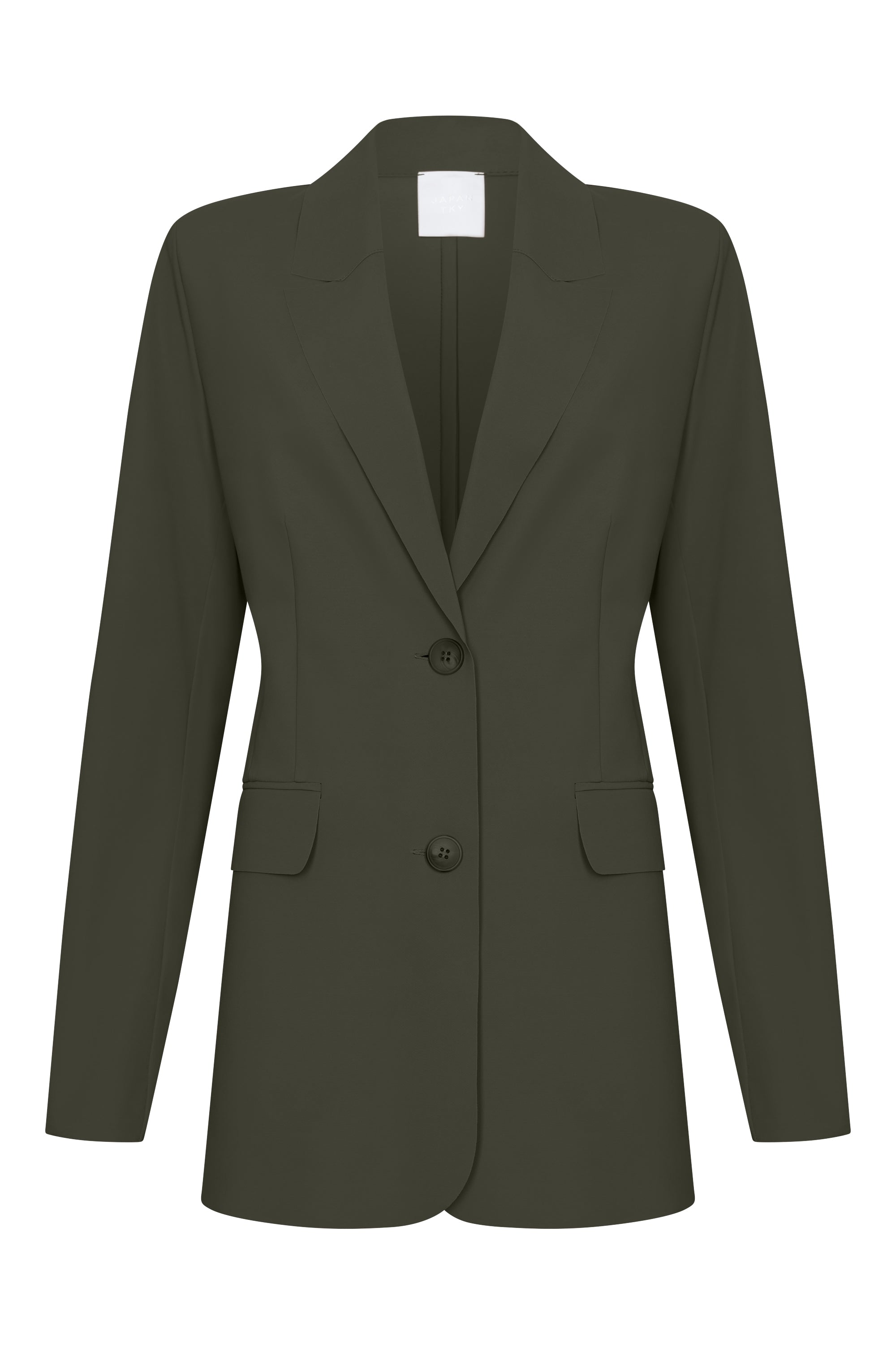 Opt for a fresh look with this oversized blazer in green, crafted from a wrinkle-free and easy-care travel jersey. The shoulder pads and double-layered front give it a sharp and stylish appearance.