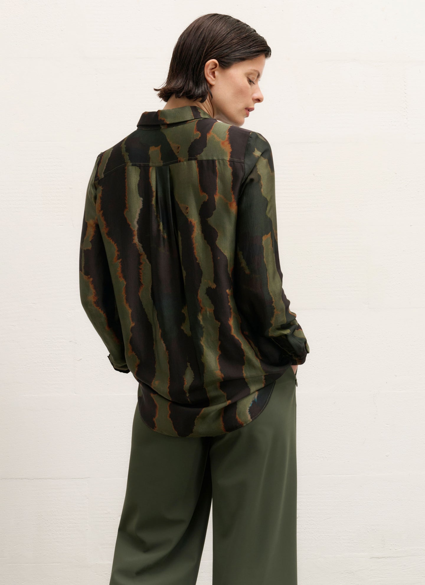 Die Bluse Uran ist aus luxuriösem Viskosesatin gefertigt. Diese Bluse verbindet ein seidiges Gefühl mit einem modernen, auffälligen Look. Die Bluse Uran ist für eine entspannte Passform konzipiert und bietet Komfort, ohne auf Stil zu verzichten.