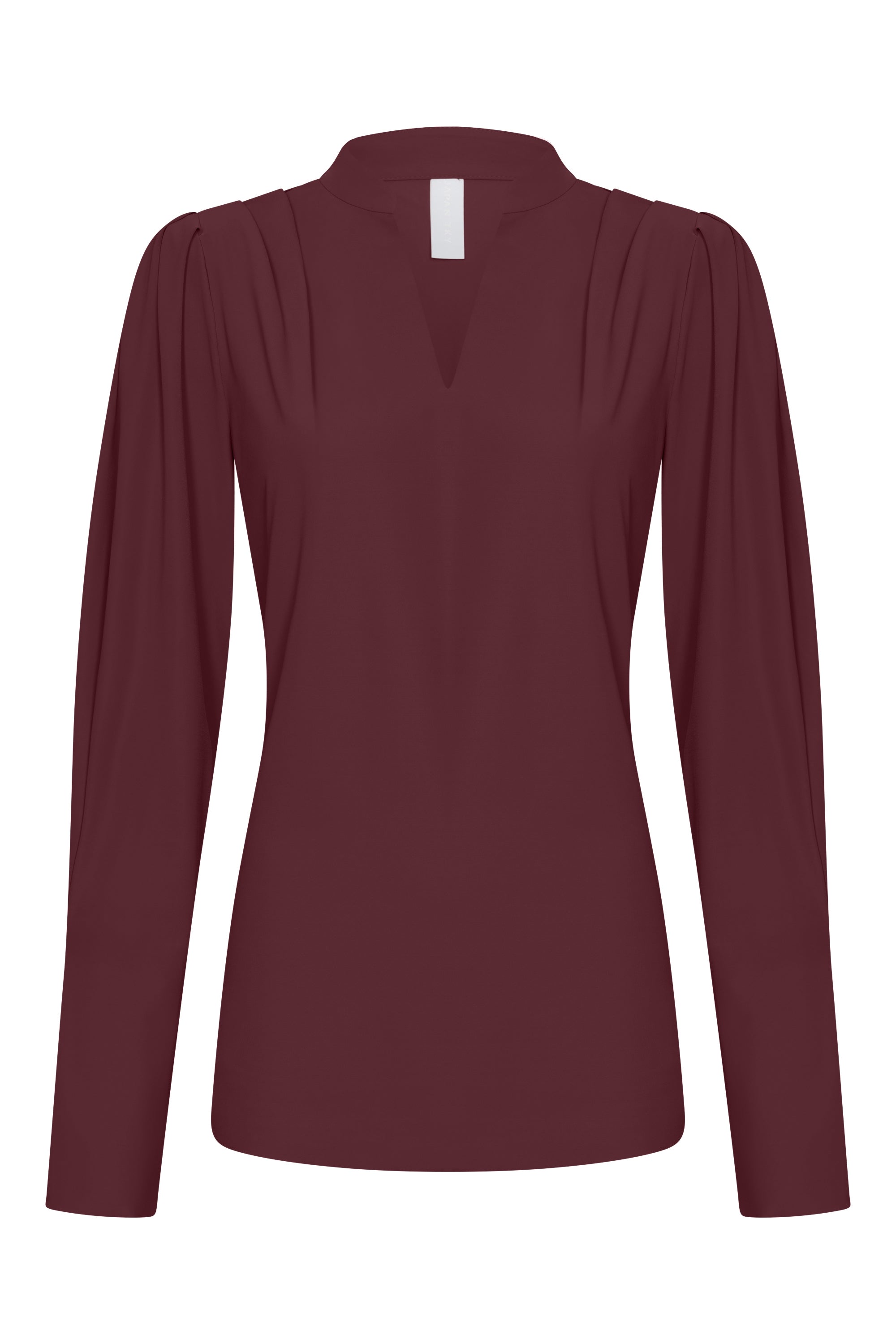 With a refined look, this blouse features a relaxed fit and an elegant V-neckline with subtle pleat details on the shoulders. The long sleeves end in a slight puff, adding a feminine and modern touch to the silhouette. The soft, wrinkle-free fabric is perfect for formal and casual occasions, ensuring daily comfort.