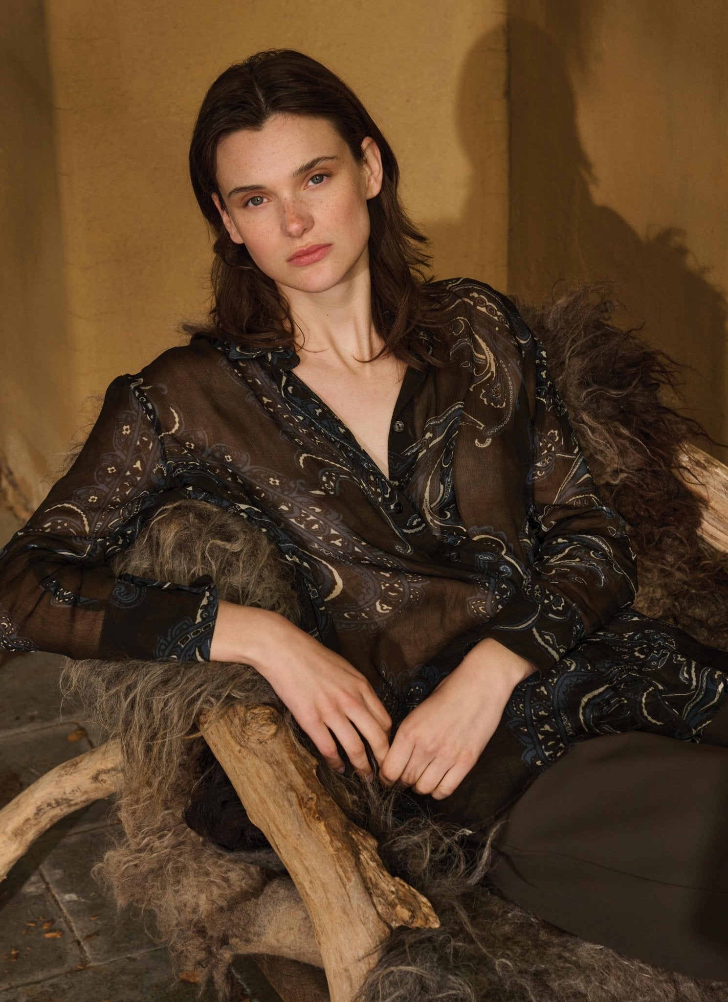 Bluse | Viskose-Crêpe | Hatyma | braun-blaues Paisley