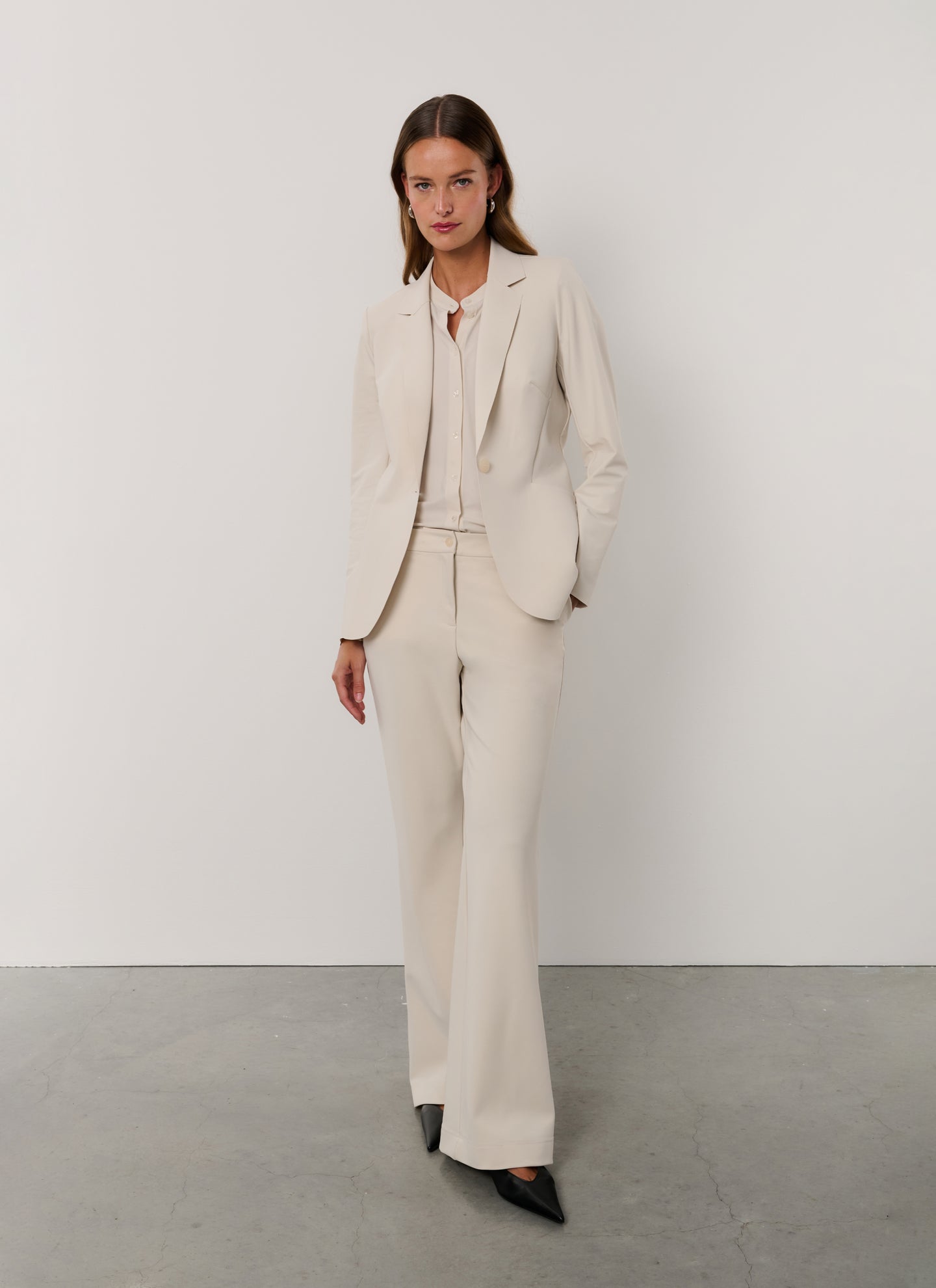 Discover our slightly flared pants in the elegant shade linen, crafted from bonded travel, a thicker version of our beloved travel fabric. These black straight-leg pants offer a sleek, modern look and ultimate comfort. The wrinkle-free material molds perfectly to your body, ensuring you look effortlessly polished all day. Ideal for both work and leisure, these comfortable, wrinkle-free pants combine style and functionality. Shop now and explore our full collection of women’s pants for every occasion!