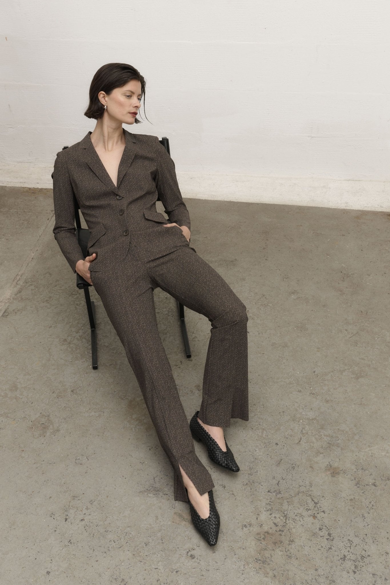 Die Etio-Hose hat eine schmeichelhafte gerade Passform und sorgt den ganzen Tag über für Komfort und Stil. Sie ist aus unserem Regular Travel Print-Stoff gefertigt und weist ein elegantes Fischgrätenmuster auf. Kombinieren Sie sie mit unserem Danno-Fischgrätenblazer, um das Outfit zu vervollständigen.
