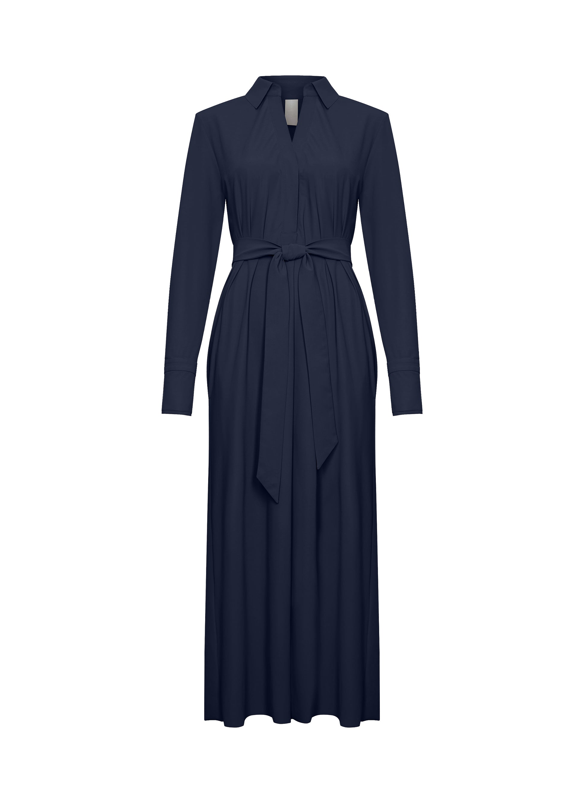 Rasy ist ein langes Kleid, das Stil und Komfort mühelos vereint. Gefertigt aus Regular-Travel-Stoff für einen glatten, pflegeleichten Look. Der gerade Schnitt mit passendem Gürtel sorgt für eine feminine Silhouette – ideal für den Alltag oder auch für elegante Anlässe.