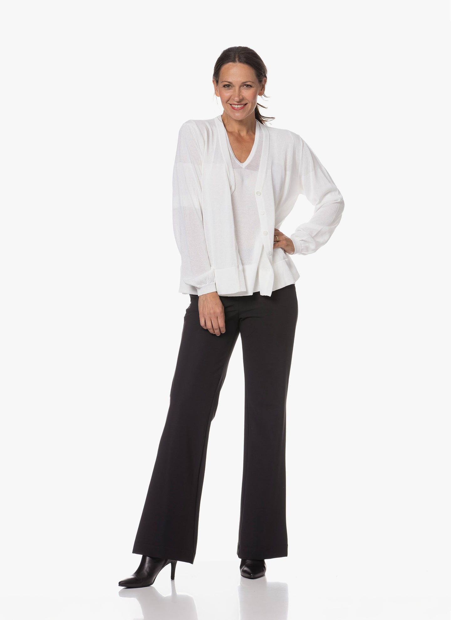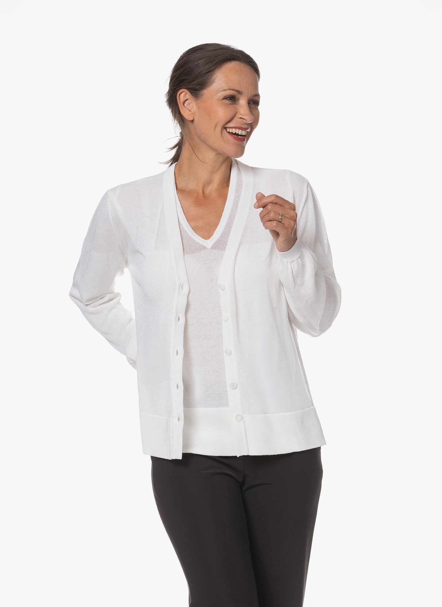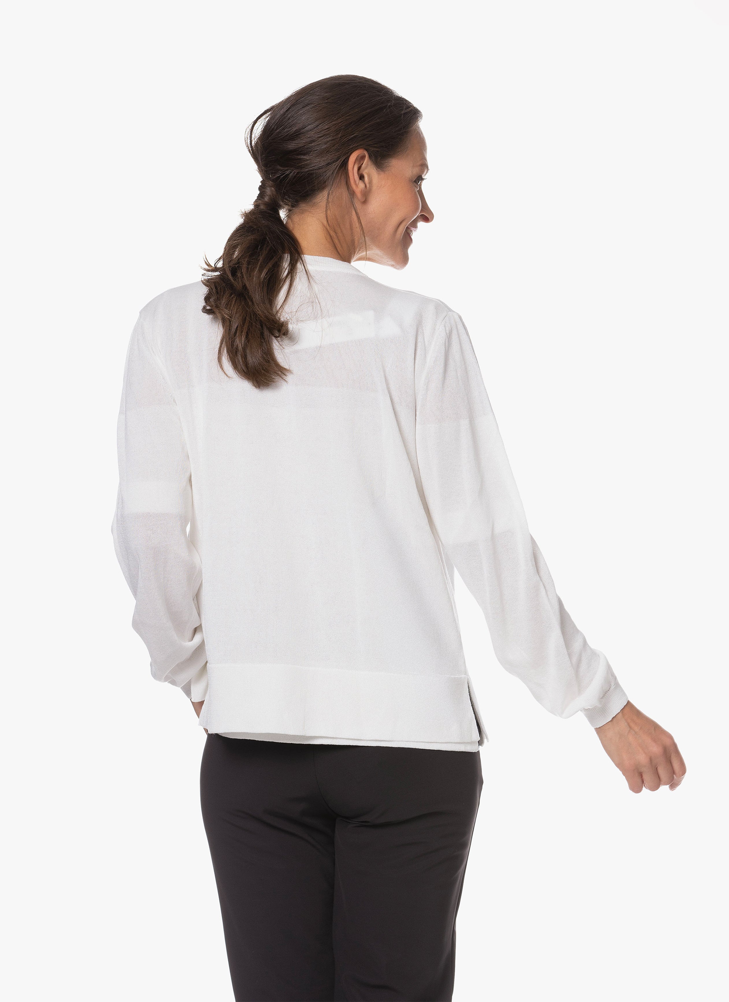 Noyi verleiht Strickmode ein nachhaltiges Upgrade mit Ecotule – einer innovativen Mischung aus natürlichen und recycelten Garnen. Die weiche Haptik und feine Maschenstruktur machen dieses zeitlose Teil vielseitig kombinierbar – elegant oder lässig. Bewusst gewählt, stilvoll getragen.