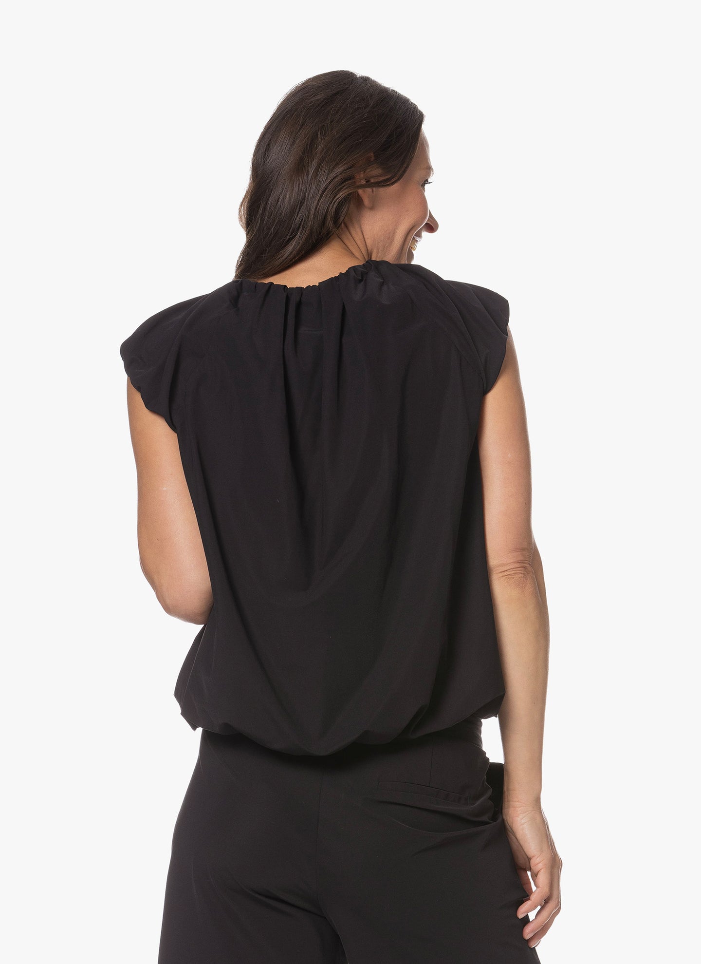 Dieses Oberteil überzeugt mit einem voluminösen Schnitt, Ballonsaumen und angeschnittenen Ärmeln. Der elastische Halsausschnitt sorgt für sanfte Falten und eine luftige, feminine Ausstrahlung. Gefertigt aus weichem Jersey für hohen Tragekomfort.