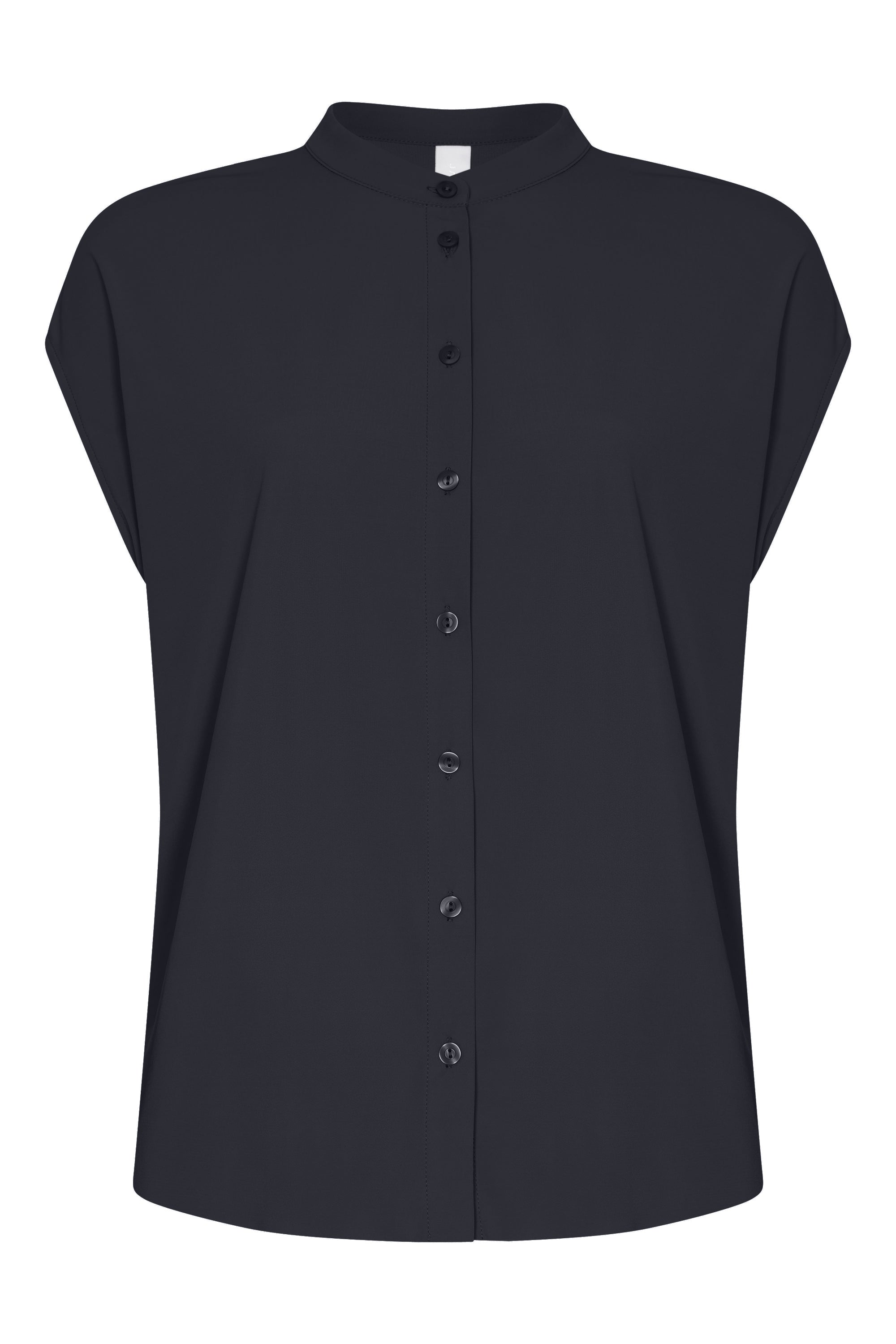 The Tokiko blouse in black-blue is designed for comfort and style, making it a perfect choice for warm days. Made from light travel jersey, this fabric offers a breathable and airy fit while maintaining a polished look. With short sleeves and a standing collar, this blouse adds a modern touch to any outfit. Wear it with tailored pants for an effortless office look or pair it with casual trousers for a relaxed feel.