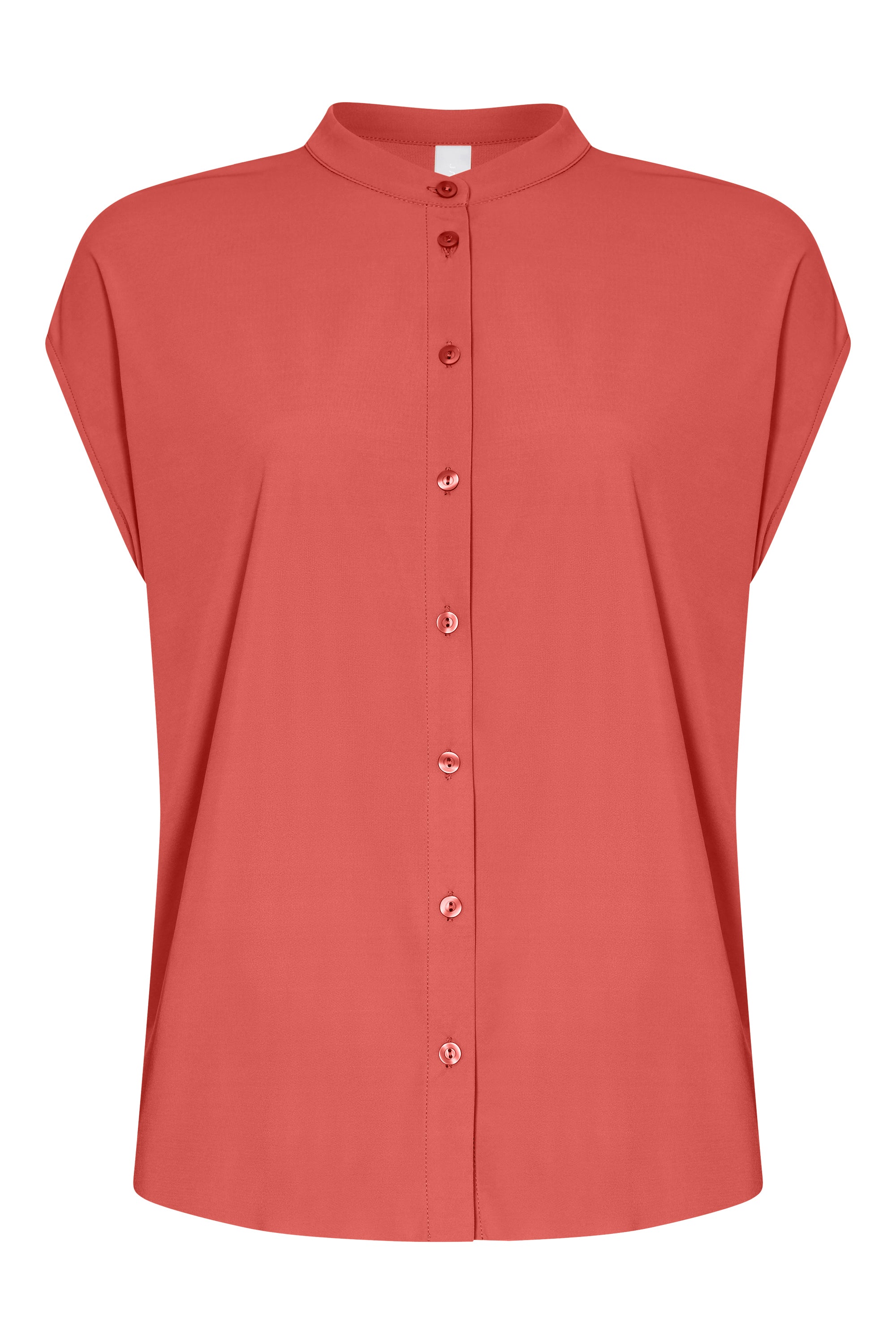 The Tokiko blouse is designed for comfort and style, making it a perfect choice for warm days. Made from light travel jersey, this fabric offers a breathable and airy fit while maintaining a polished look. With short sleeves and a standing collar, this blouse adds a modern touch to any outfit. Wear it with tailored pants for an effortless office look or pair it with casual trousers for a relaxed feel.