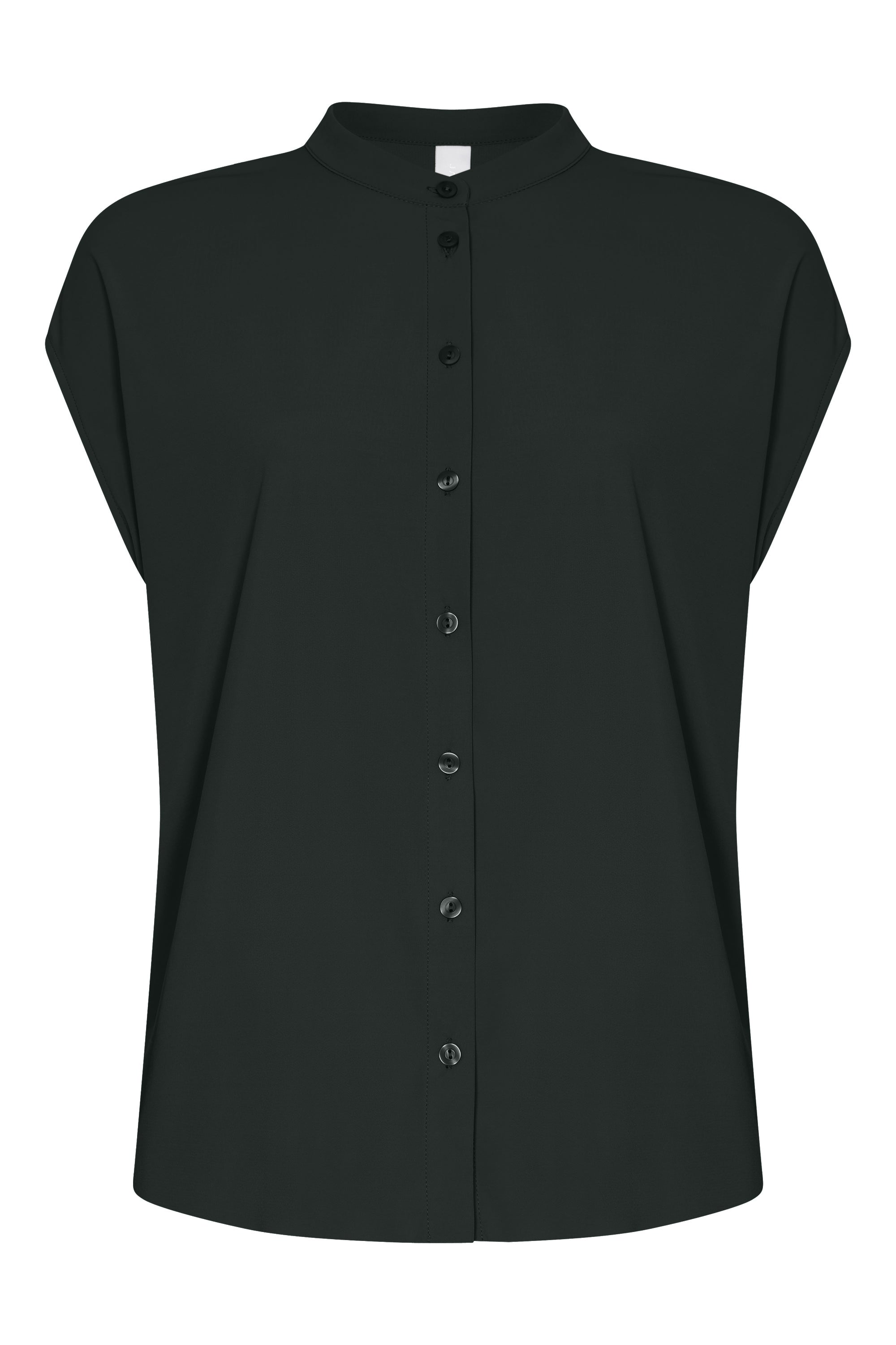 The Tokiko blouse in deep black is designed for comfort and style, making it a perfect choice for warm days. Made from light travel jersey, this fabric offers a breathable and airy fit while maintaining a polished look. With short sleeves and a standing collar, this blouse adds a modern touch to any outfit. Wear it with tailored pants for an effortless office look or pair it with casual trousers for a relaxed feel.