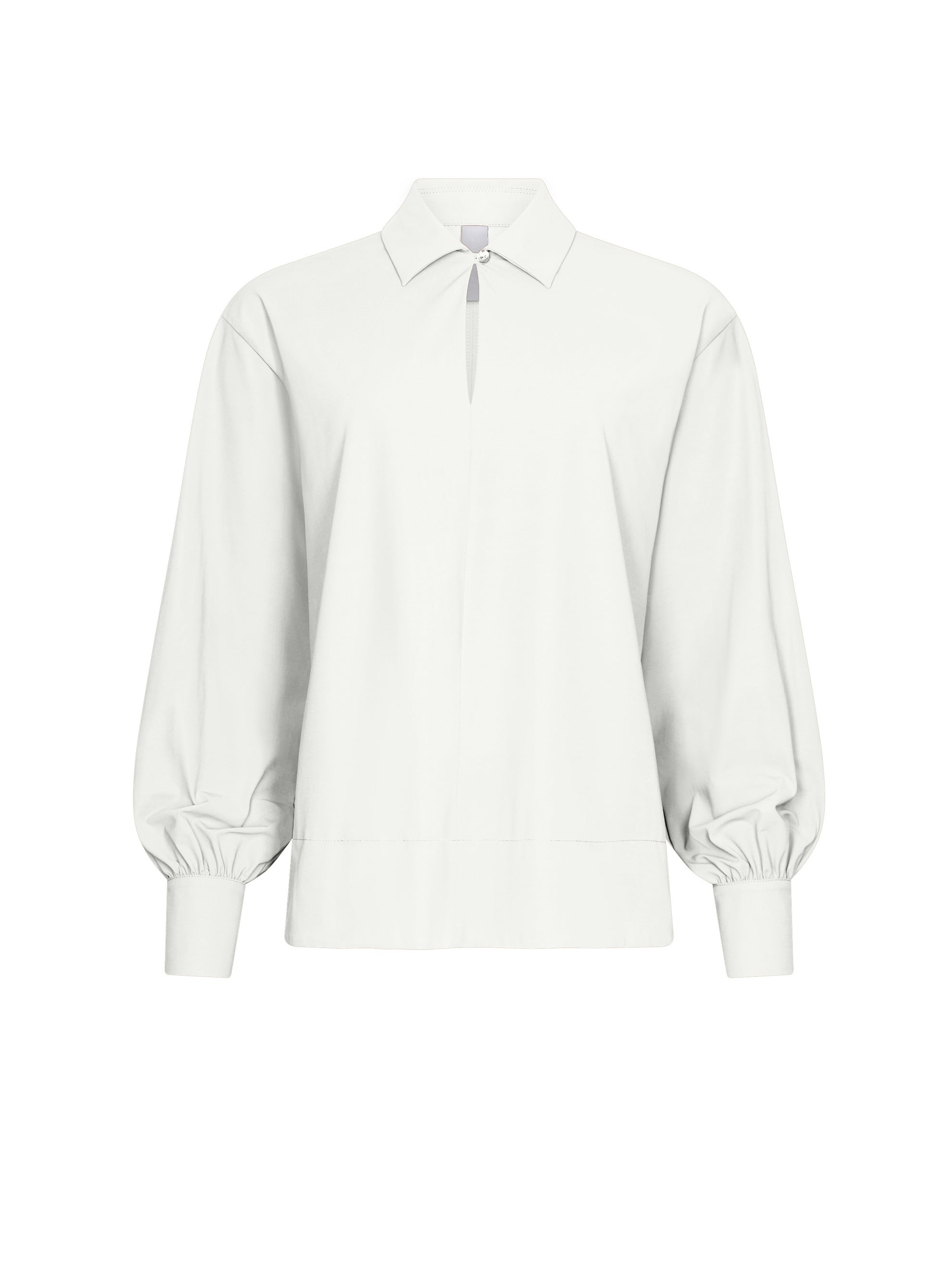 The Sotoko blouse is a modern essential with refined details: puff sleeves, wide cuffs, a straight silhouette and a subtle neckline slit. Made from smooth, wrinkle-free travel fabric – combining daily comfort with effortless elegance.