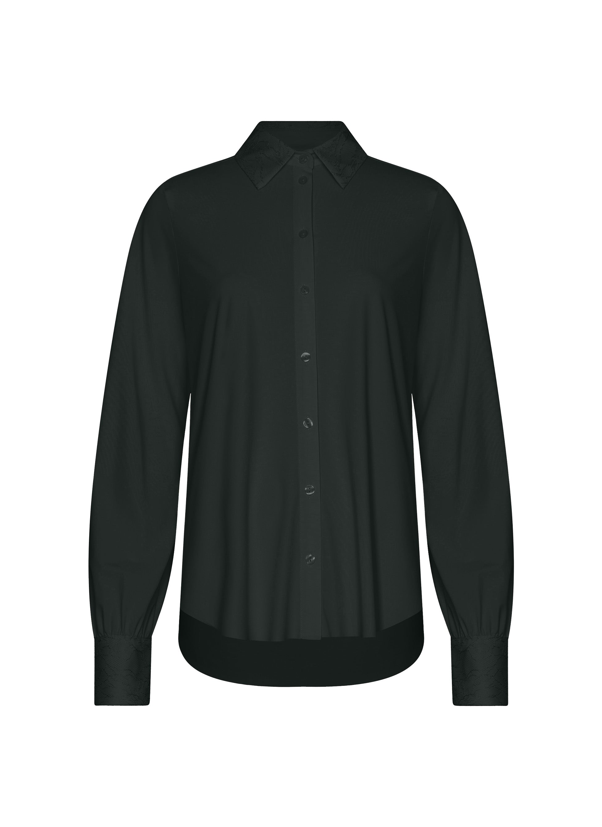 Blouse Myla laat zien dat een essential niet saai hoeft te zijn. De puntkraag met lace-detail is de echte eye-catcher, terwijl de Light Travel Jersey stof bijdraagt aan de draagbaarheid. De volledige doorknoopsluiting, licht relaxte pasvorm en lange mouwen maakt het een blouse die gemakkelijk gelaagd te dragen is onder bijvoorbeeld truien en vesten.