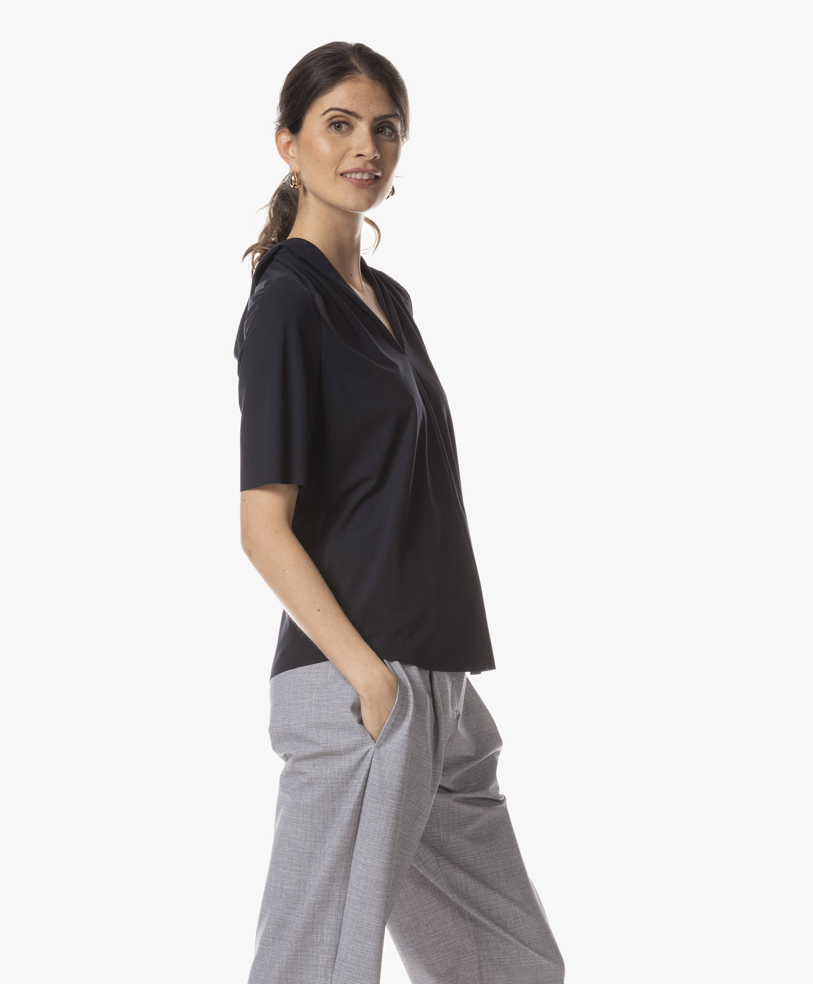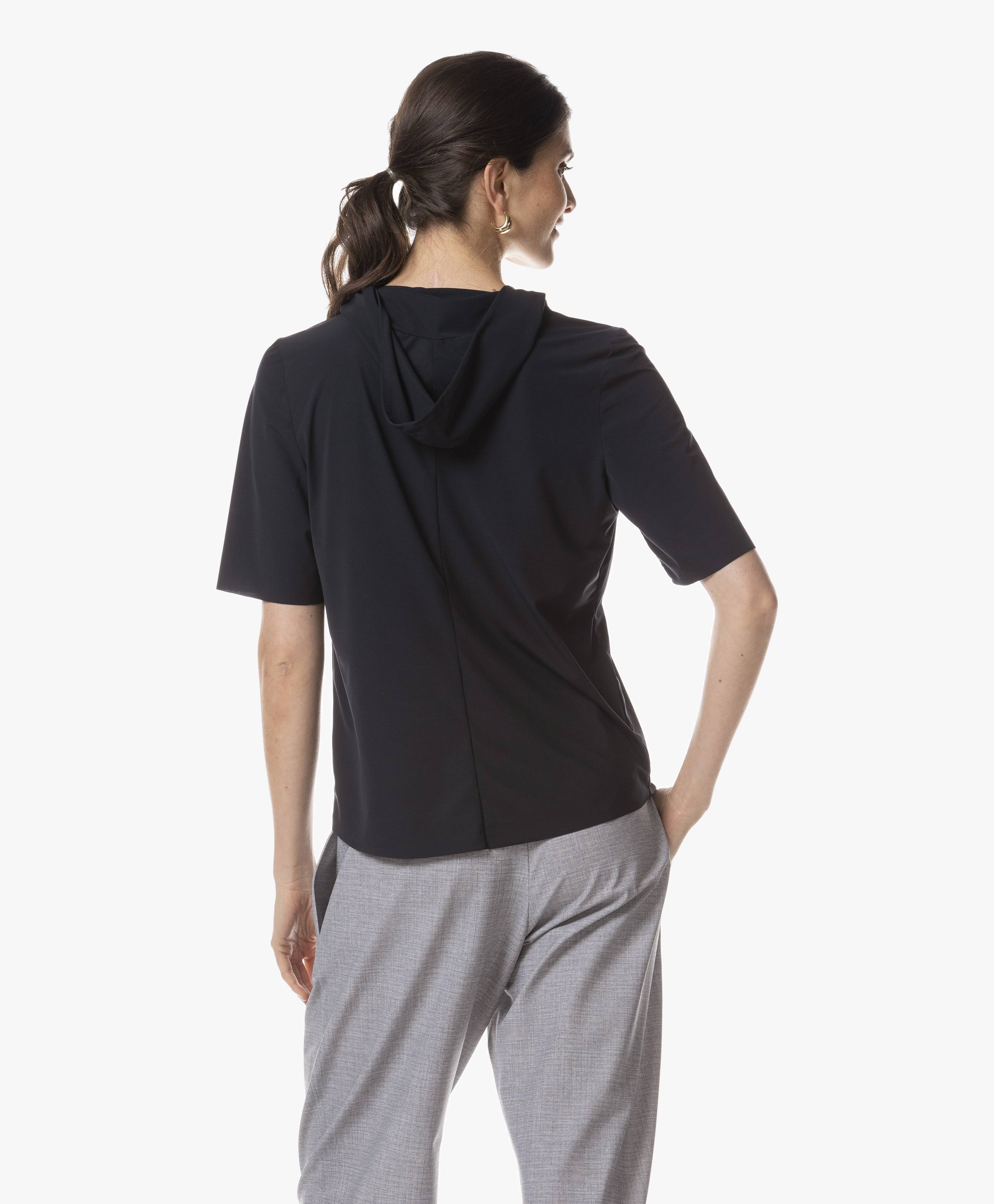 Meet the Honami Top, a perfect blend of sporty elegance and effortless comfort. Crafted from light travel jersey, this top is designed for breathability, stretch, and all-day wearability. Featuring short sleeves and a unique hooded collar, it adds a modern touch to your casual wardrobe.