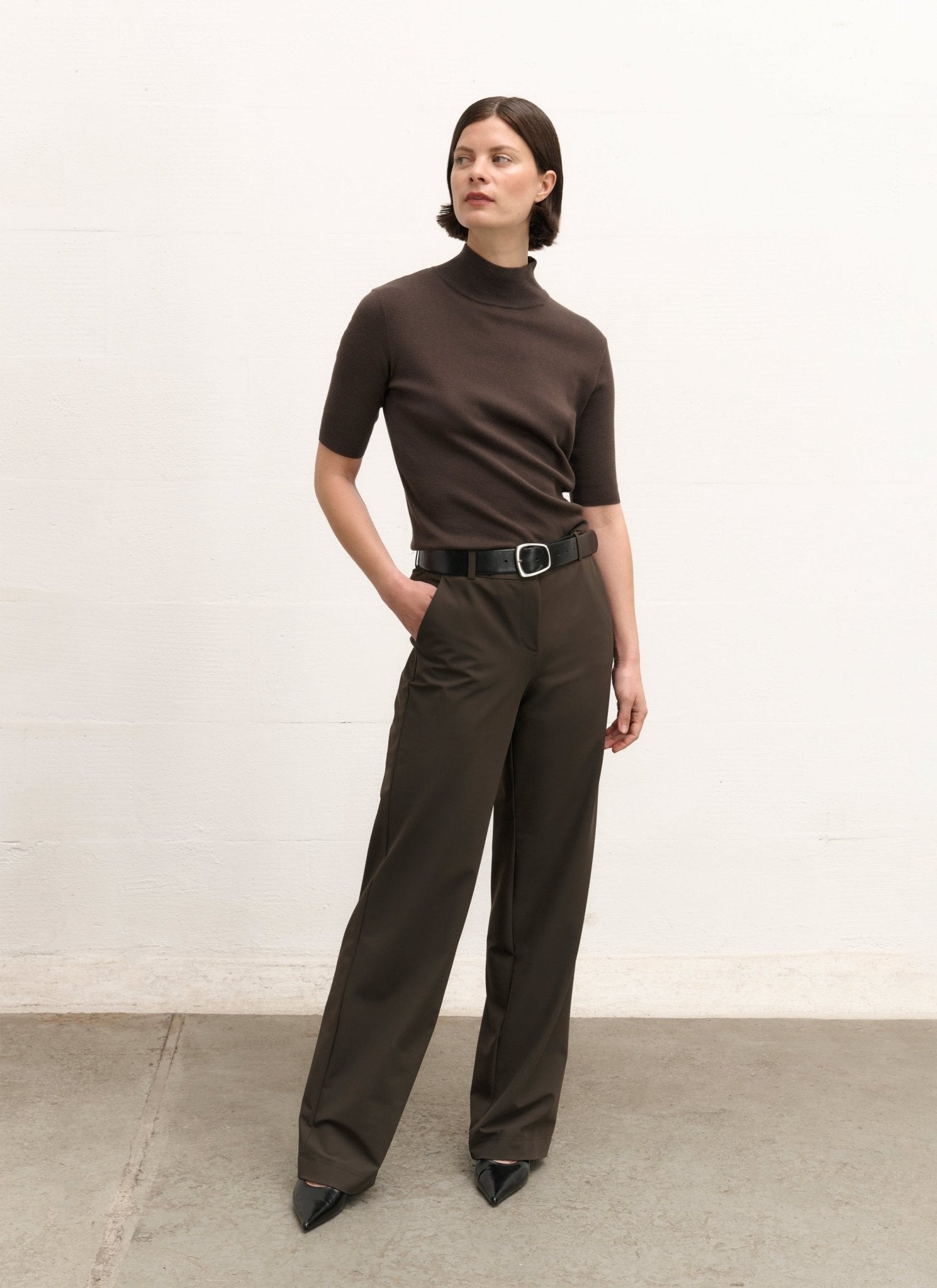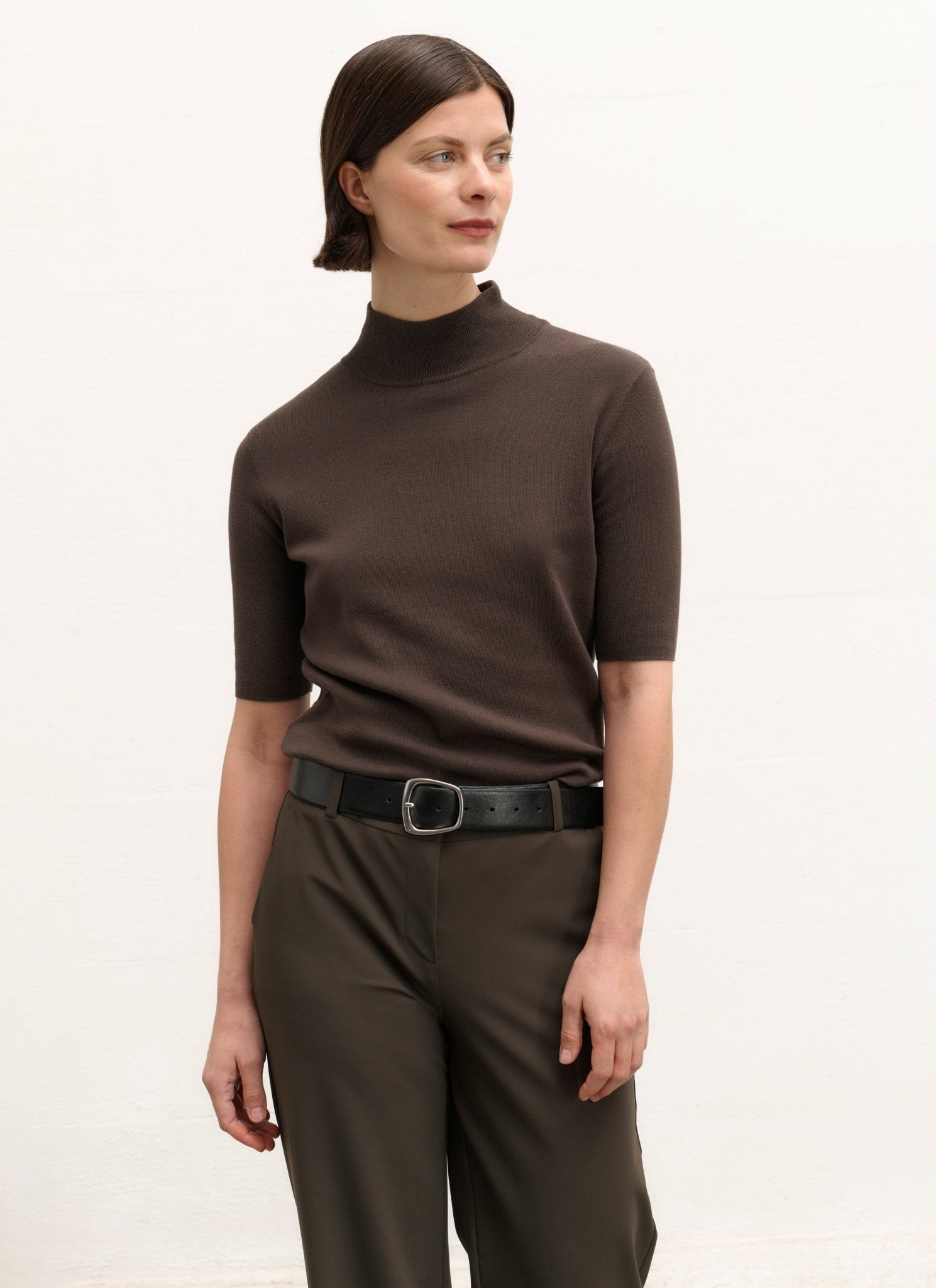 Een warme trui van een katoenmix met korte mouwen. Deze trui heeft een comfortabel, normaal model met een geribde kraag en een verfijnde breistructuur. Perfect voor alledaagse outfits dankzij de tijdloze stijl en het comfort. Draag het solo op warmere dagen of gecombineerd voor extra veelzijdigheid tijdens koudere seizoenen. Een essentieel kledingstuk voor een moeiteloze en moderne look.