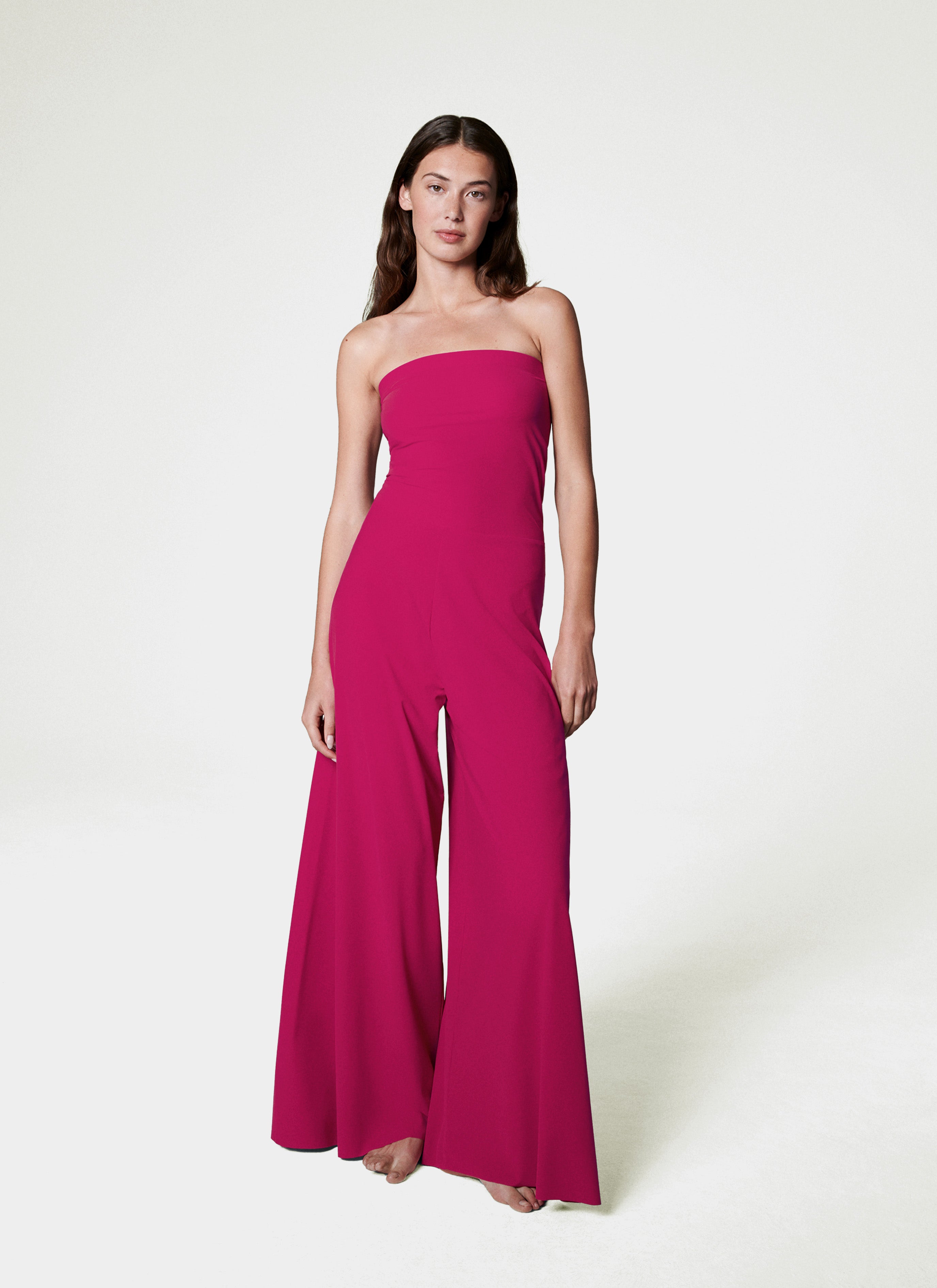 The Jumpy in the color Fuchsia is a real eye-catcher! The strapless jumpsuit is made from lightweight travel jersey, which provides plenty of stretch. The top of the Jumpy features an elastic band that ensures it stays in place. Dress it down with bare feet for a beach day, or elevate the look with heels for a chic cocktail event. It is designed to make you shine, whatever the occasion.