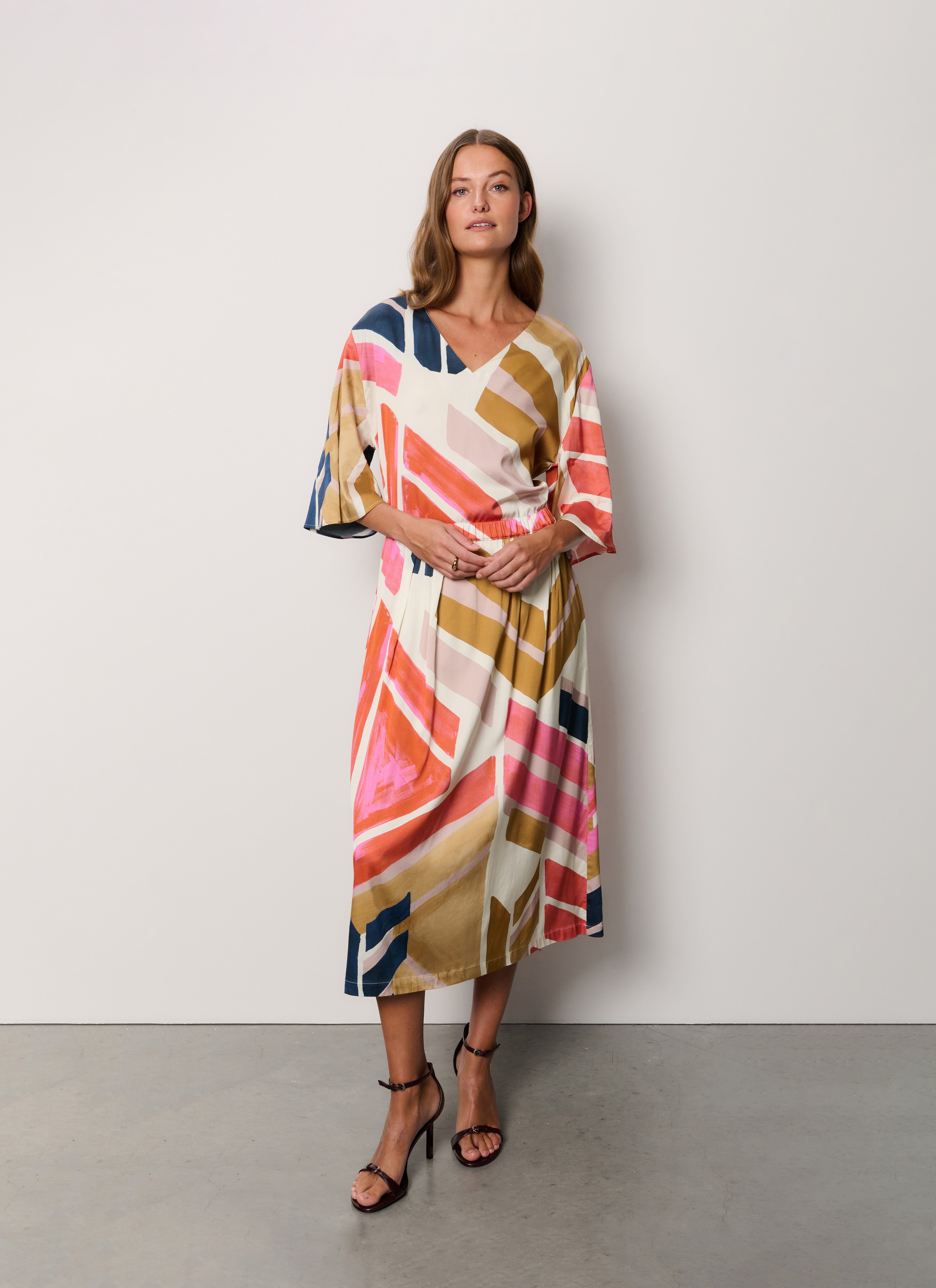 Skirt | Satin Viscose Dessin | Mitsuki | Colorfull Blocks