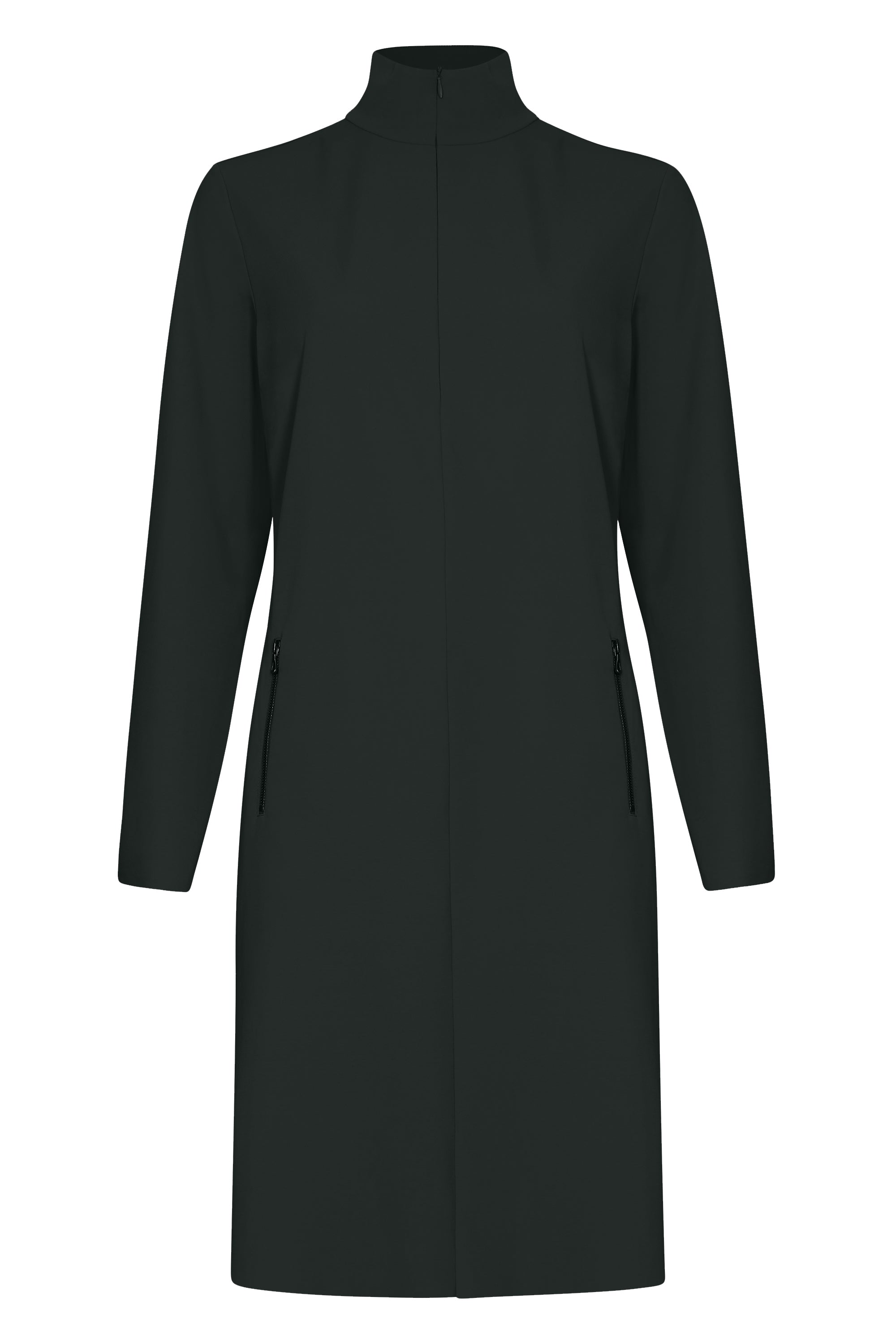 The Tanamo dress is made from Bonded Travel fabric. It has a design that features a sleek and modern silhouette, with very practical side pockets. This dress is ideal for the modern, on-the-go individual looking for a blend of elegance and functionality.