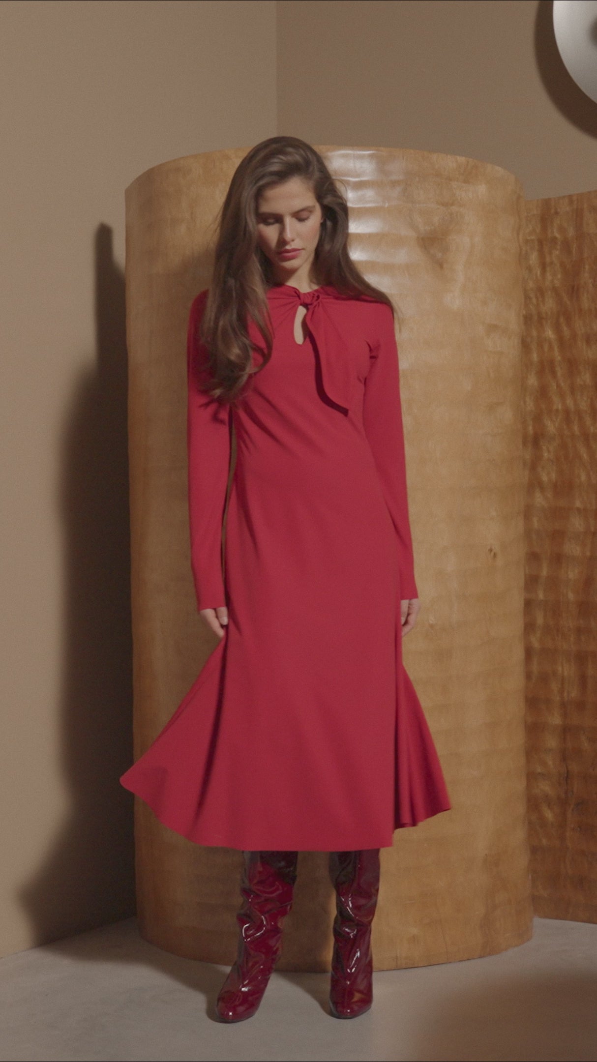Blackberry wine and warm sand tones with new-modern, feminine styles characterize this drop. Japan TKY introduces comfort travel jersey in this collection, a warmer, densely knit quality for the bottoms. Familiar crepe, matching designs in viscose satin, a boiled wool bomberjacket, a Kubi (this season's potential hit!) and soft knit complete the drop. Elegance in a modern silhouette, tonal stripes, belted blouse-blazers, new shapes in bottoms and tops with surprising accents reflect the versatility within this drop.