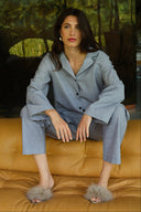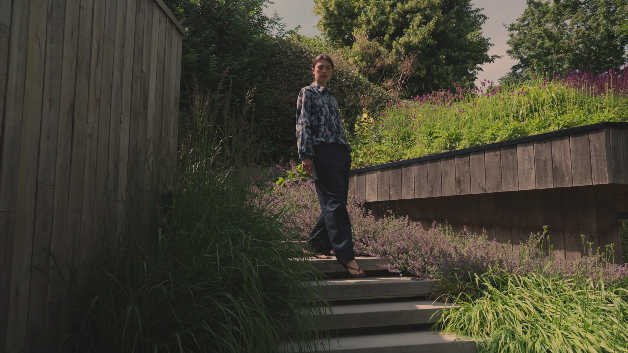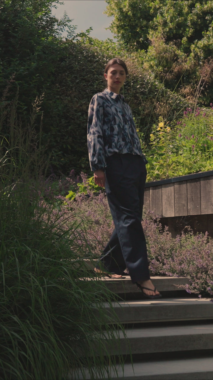 Key pieces include the Hiyu bomber jacket, crafted in signature travel jersey and finished with the rich Summer Shadow print, a soft blue design inspired by the shadows of palm leaves. The collection also introduces a refined matching set featuring the Jorika Dessin blouse, Nanaka Dessin pants and Makoto Dessin jacket in the Grey Structure print, adding depth and texture to modern tailoring silhouettes.
