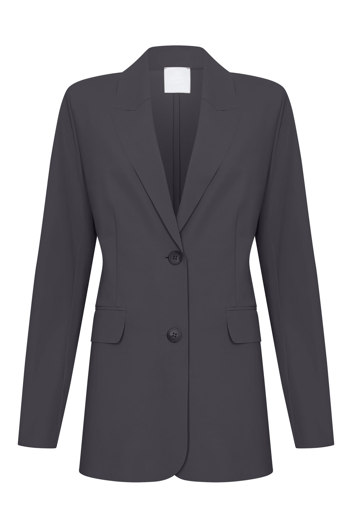 In the mysterious shade of night shade, this oversized blazer is made from an easy-care, wrinkle-free travel jersey with shoulder pads for added structure and a double-layered front for a refined look.