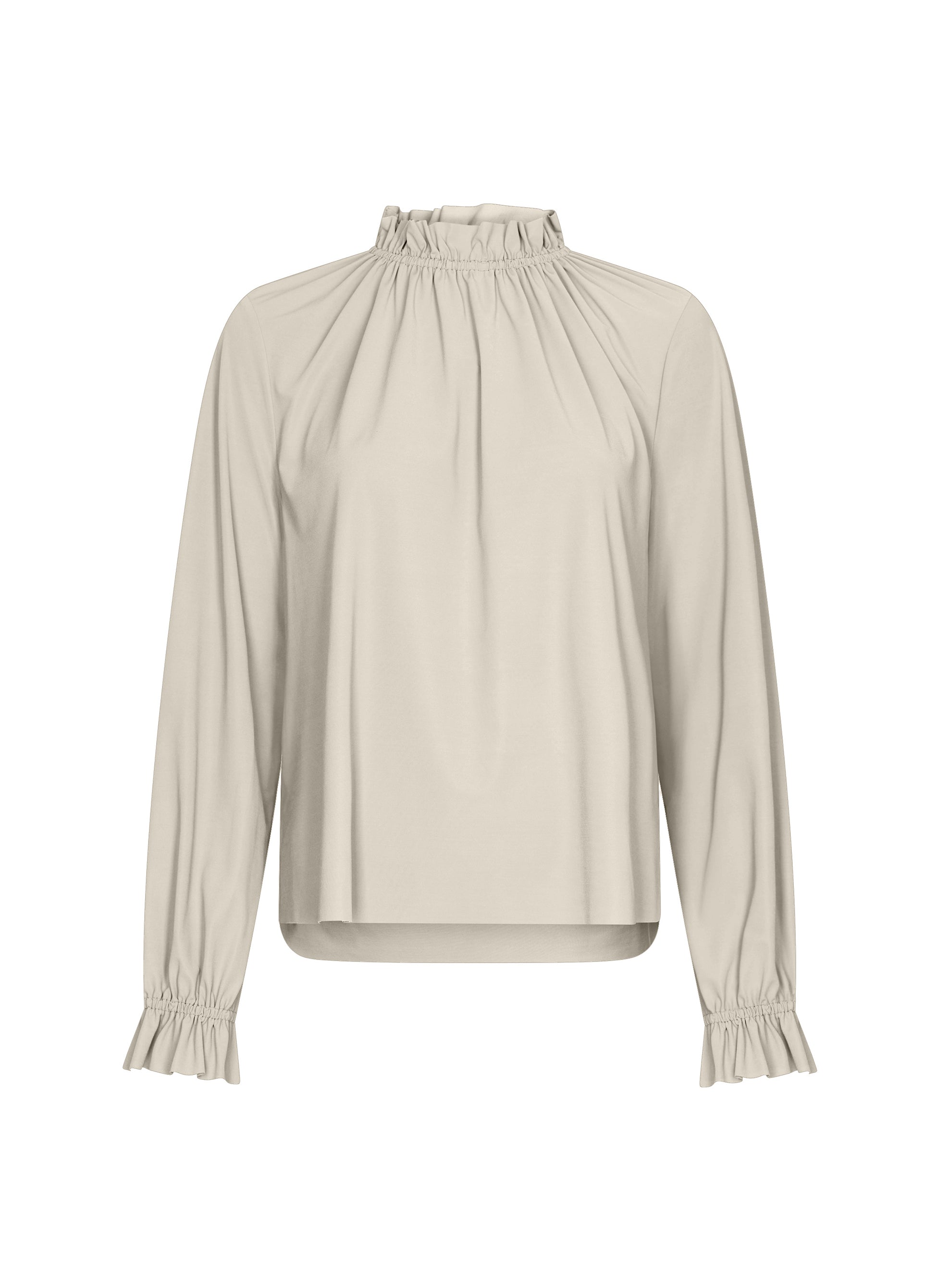 Soft Travel’s Mukawa blouse oozes subtle charm with its ruffled collar and puffed sleeves for a playful silhouette. The straight fit makes it effortlessly chic – perfect for any occasion.