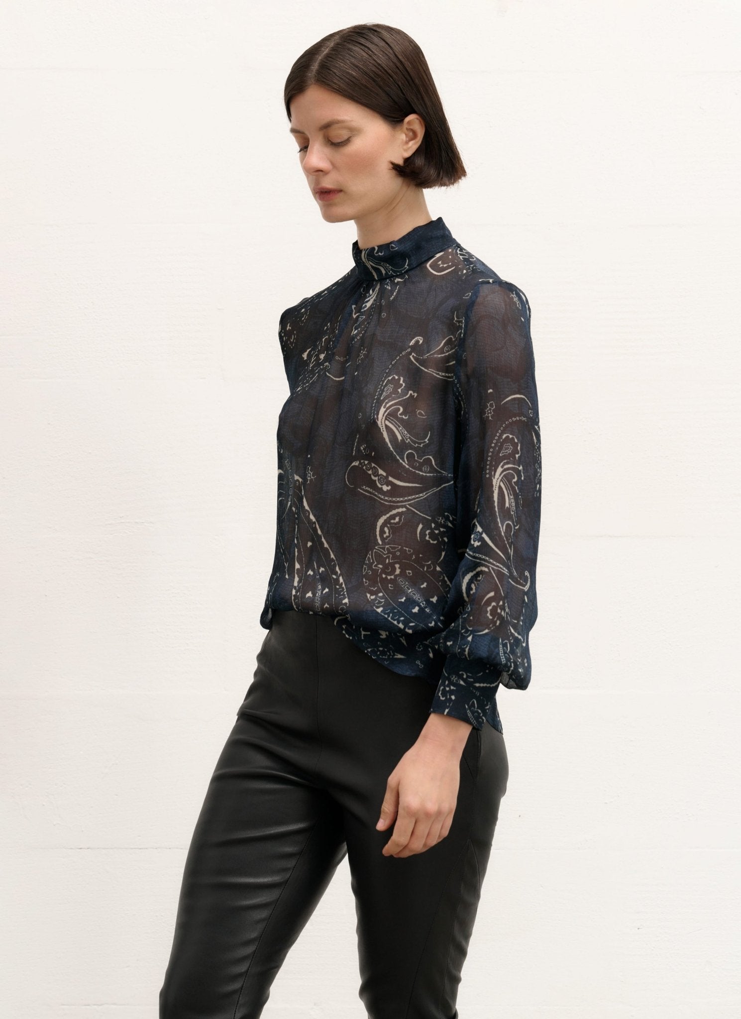 Blouse | Viscose Crepe | Kirika | black blue paisley