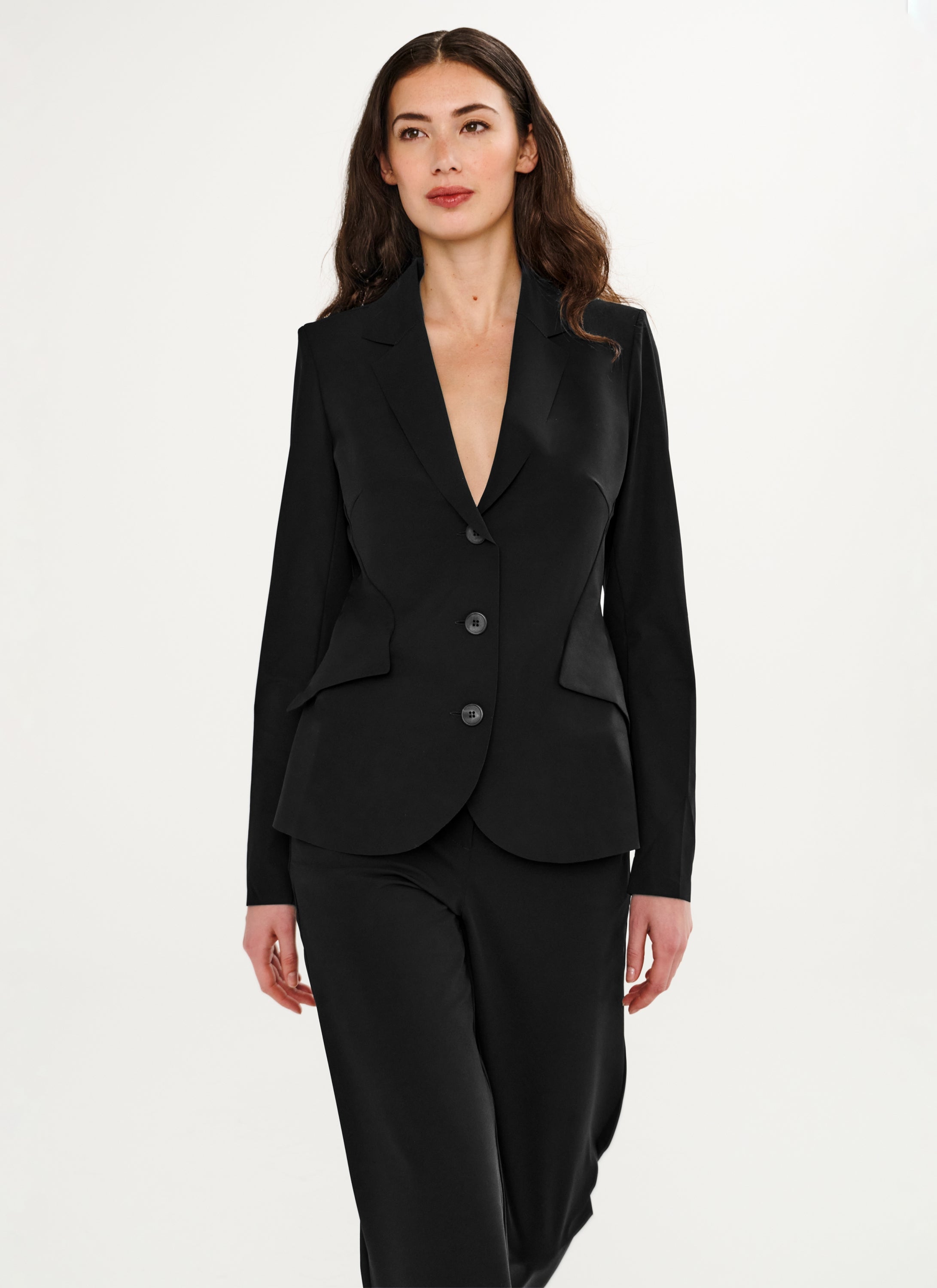 Add the tailored blazer Danno to your wardrobe. Made from easy-care, wrinkle-free travel jersey, it features a double-layered front panel and diagonal seams with slit pockets, creating a streamlined silhouette that flatters your figure.