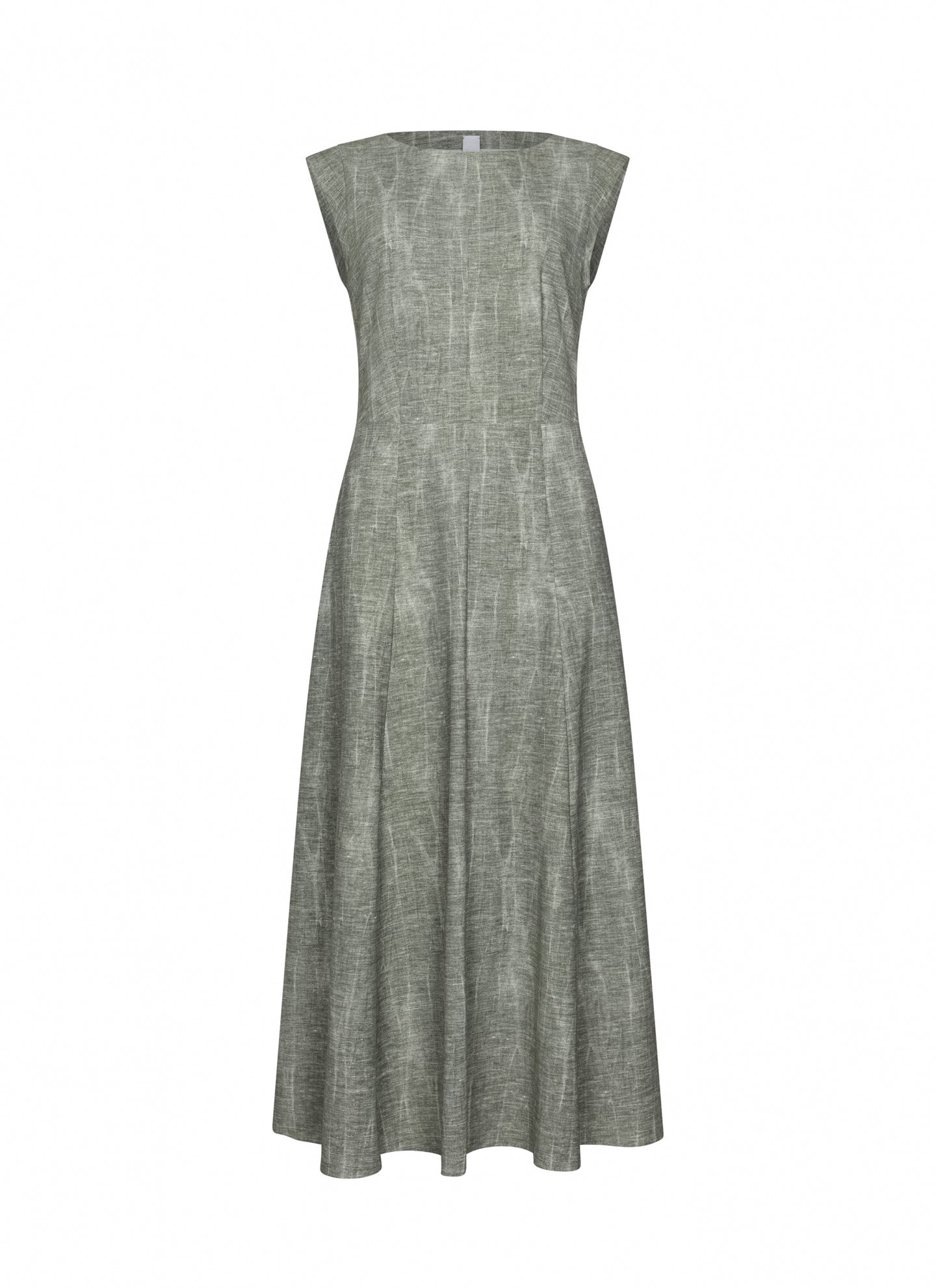 The sleeveless Tami dress is a long, elegant piece made from regular travel print fabric in a dusky green structure. Designed for both style and comfort, it features two front pockets for a subtle yet practical detail. Pair the Tami dress with the Chisami print jacket for a layered and warmer look to create a sophisticated and effortless outfit.