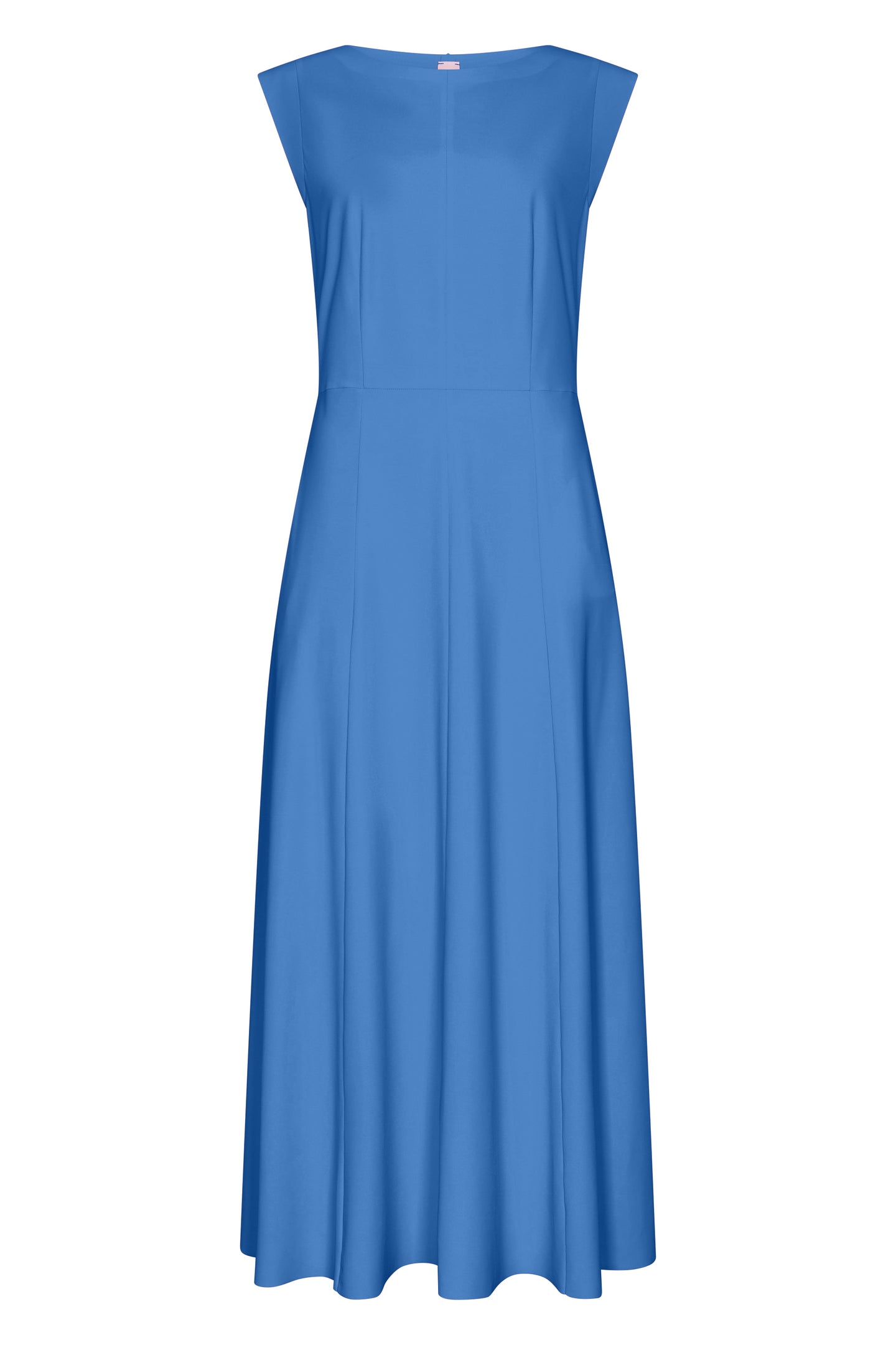 The sleeveless Tami dress is a midi-length, elegant piece made from regular travel jersey in shade coral. Designed for both style and comfort, it features two front pockets for a subtle yet practical detail.