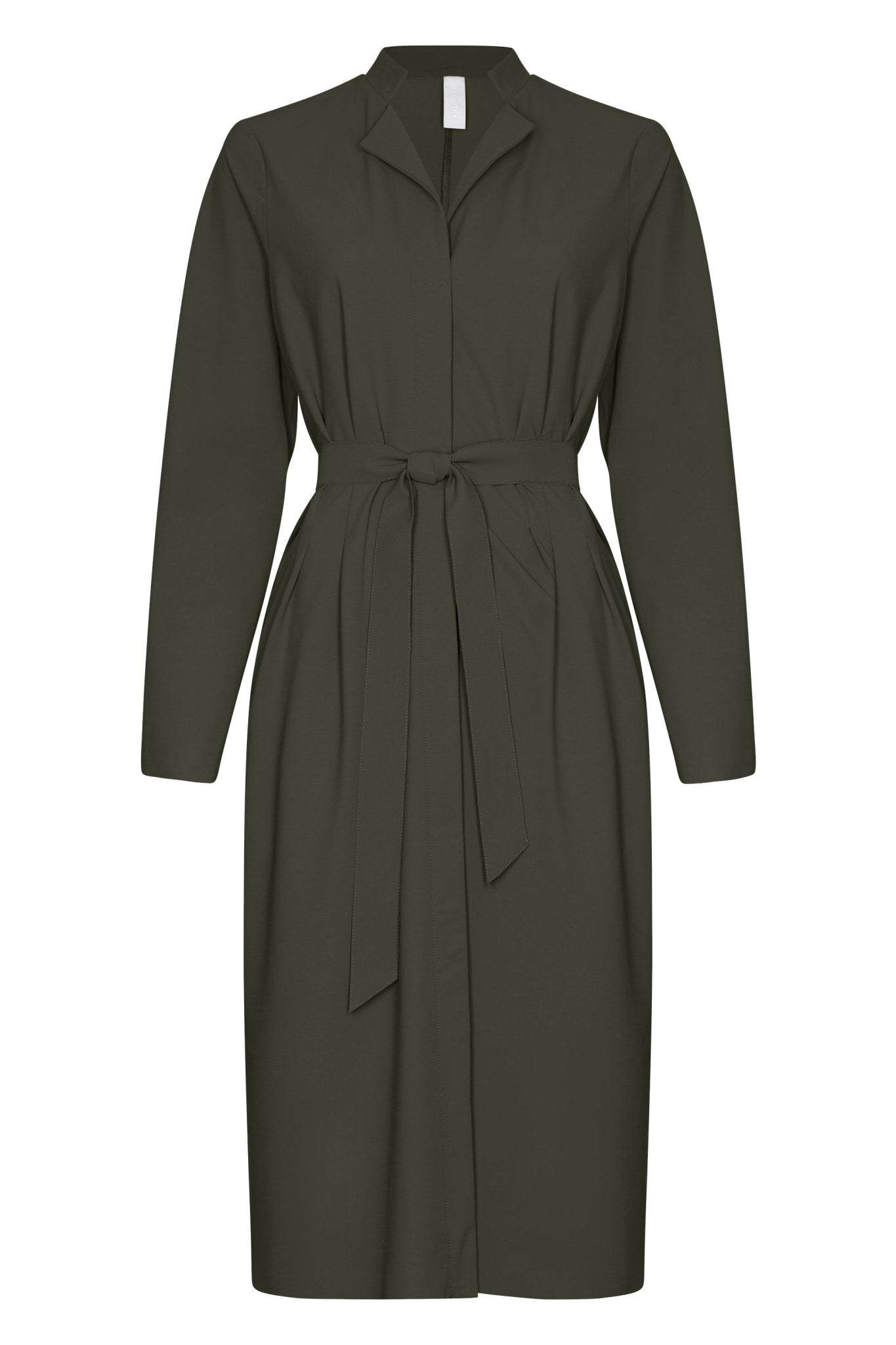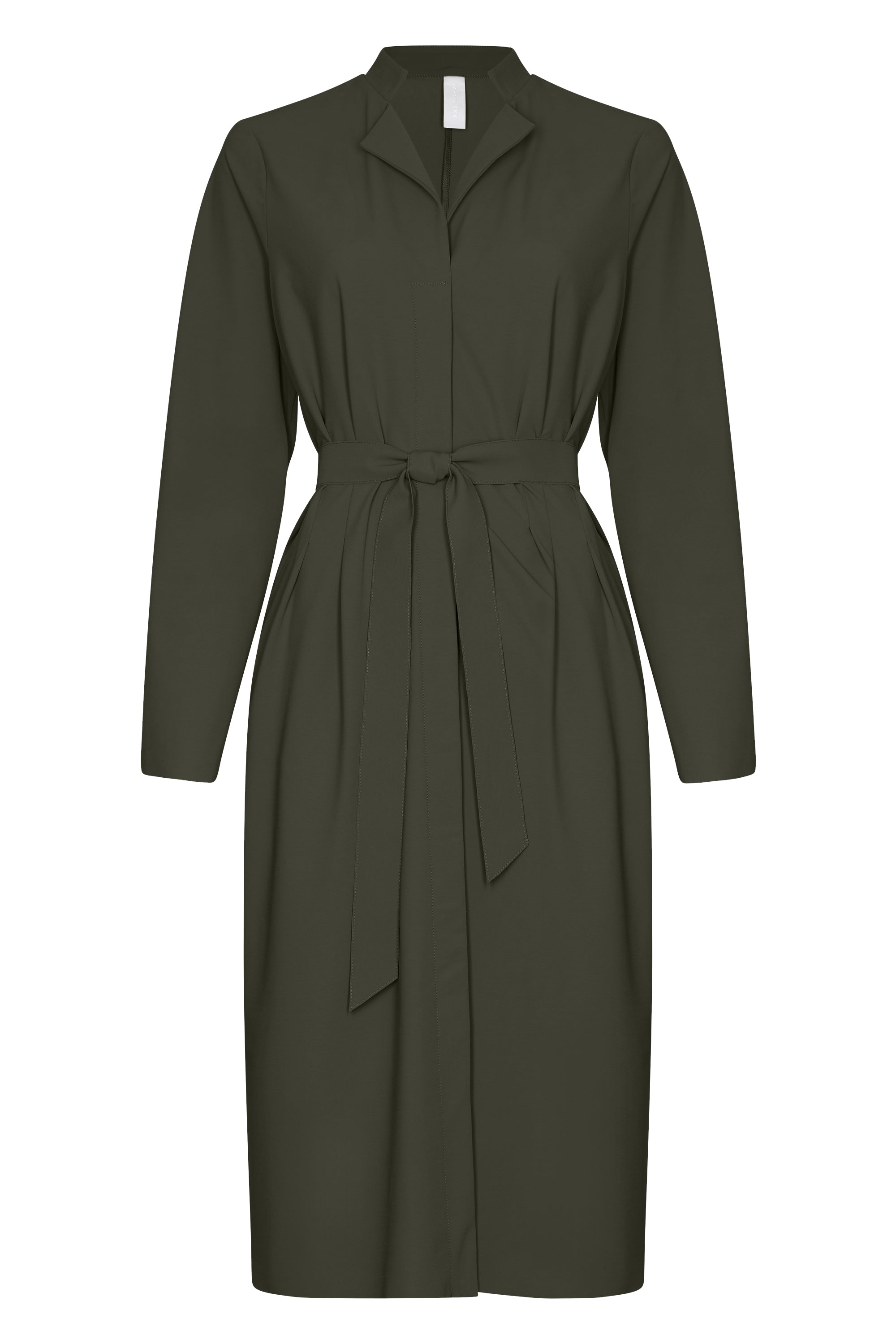 Effortless and elegant dark blue Dress. This versatile piece features a minimalist design with a clean, streamlined silhouette, perfect for multiple occasions. The dress is tailored from a premium, soft fabric that drapes beautifully, offering both comfort and style. The wrap detail cinches the waist, creating a flattering fit, while the hidden button-up front and band collar add a touch of modern elegance.
