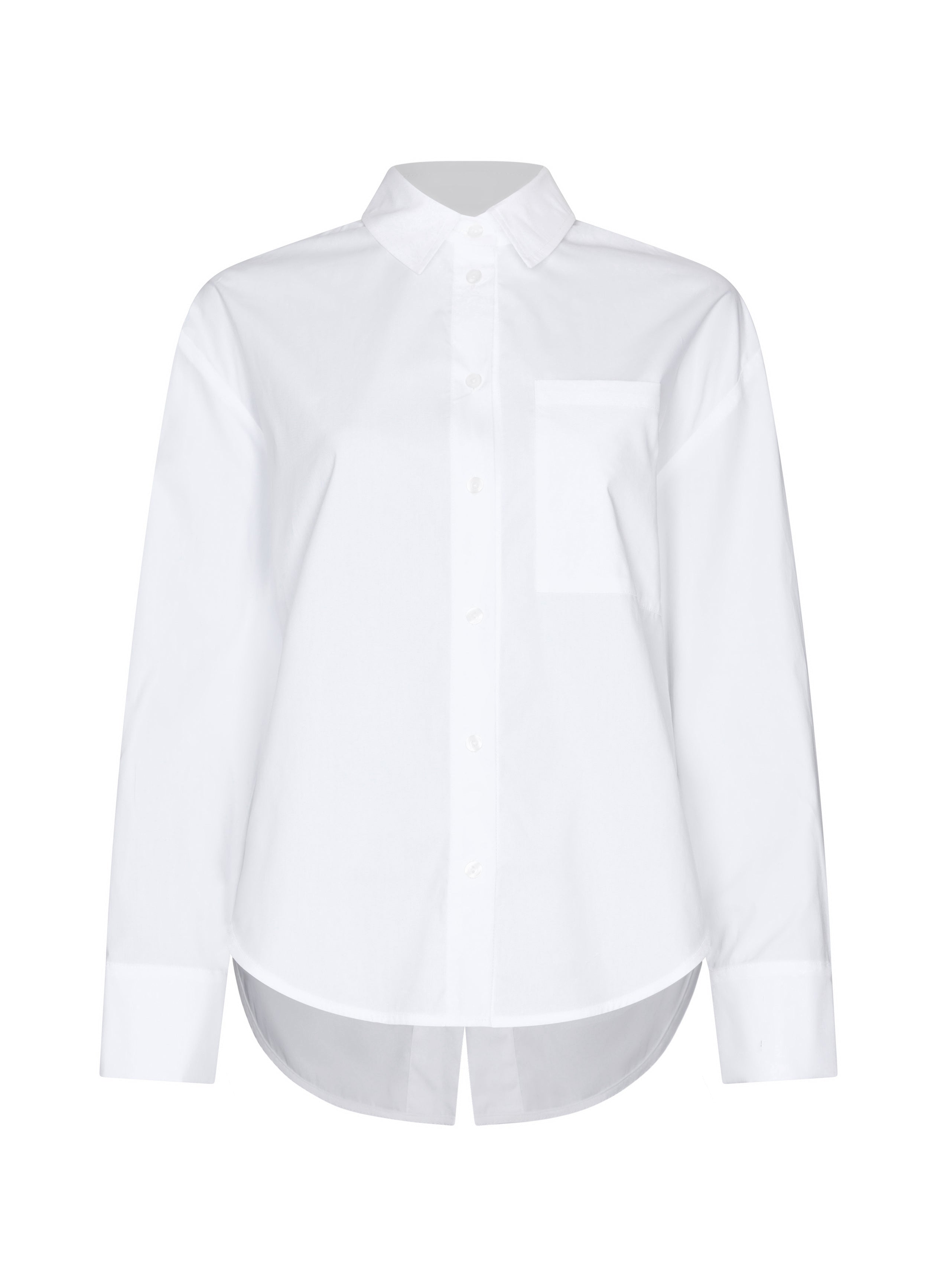 At first glance the Miyoko shirt may look like a classic button shirt but the back reveals its modern twist. This straight lightly oversized design features a split detail at the back which drapes beautifully in the cotton stretch poplin. The difference in length between the front and back panels adds a contemporary feel and makes it a versatile piece that pairs effortlessly with trousers and skirts.