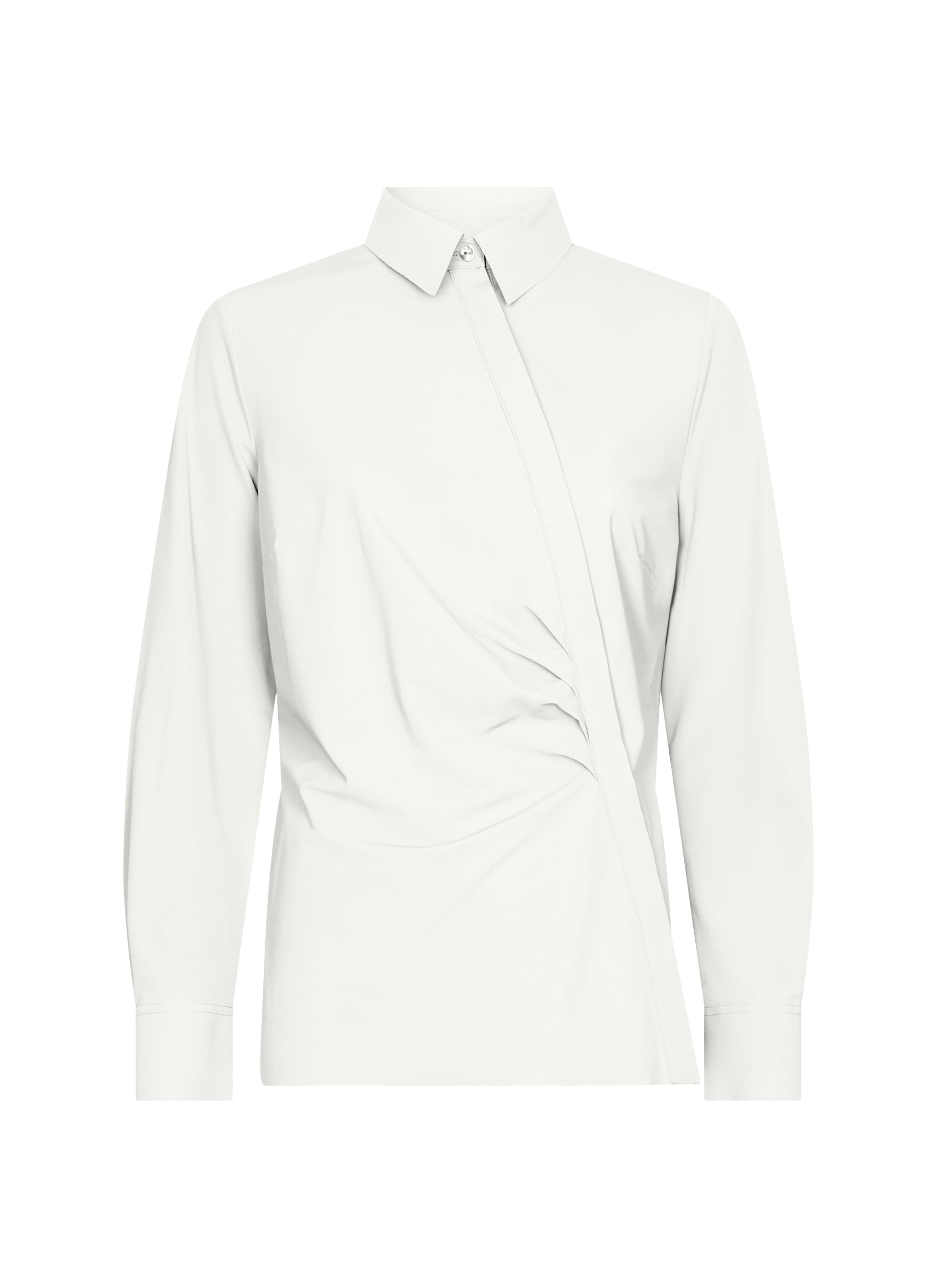 The Noni blouse is a refined essential with a modern twist. Featuring a diagonal front closure and delicate pleats along the waistline, it creates a flattering, feminine silhouette. Designed with a classic collar and crafted from regular travel fabric, this blouse combines comfort, stretch and easy care – perfect for everyday wear or more polished occasions.