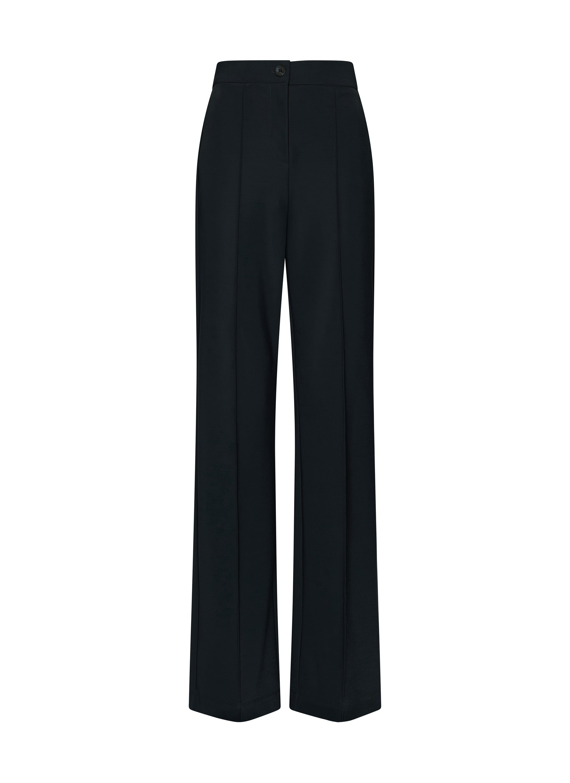 The Gujo trousers are a true essential. Designed with wide legs and a high waist, they are made from flattering bonded travel jersey that feels comfortable and is easy to wear. Slim pintuck pleats add a refined detail, making these trousers easy to style in many ways.