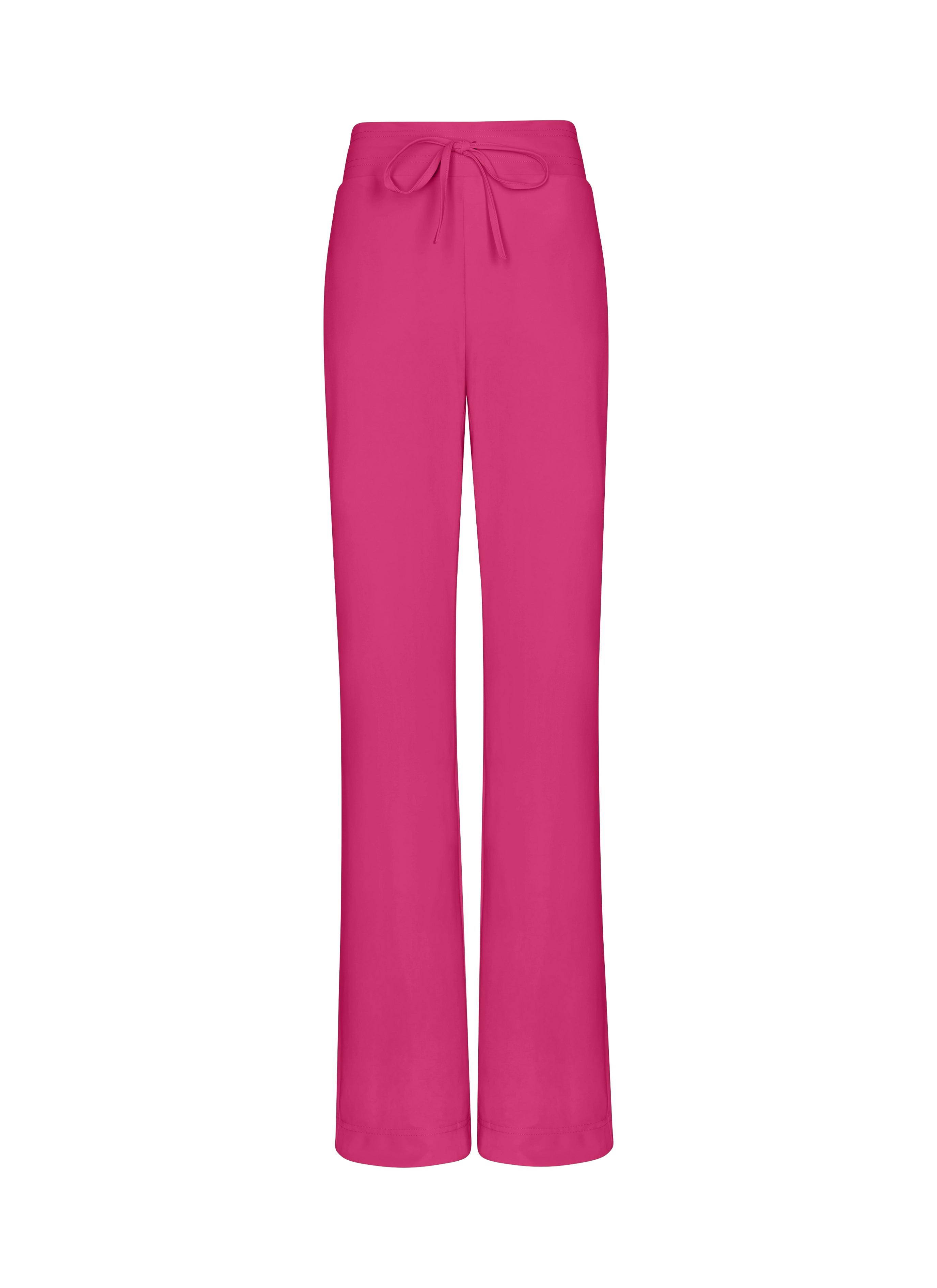 Shop the Myza pants in bright pink. It is expertly crafted from regular travel jersey for a perfect blend of style and functionality. Designed with a wide quilted waistband with tie closure, these pants allow you to easily adjust the fit to suit your body, ensuring maximum comfort throughout the day. Featuring a relaxed silhouette, the Myza Pants offer a laid-back vibe while providing practicality with side pockets for your essentials. These pants are versatile enough to be dressed up or down and ideal for both travel and everyday wear.