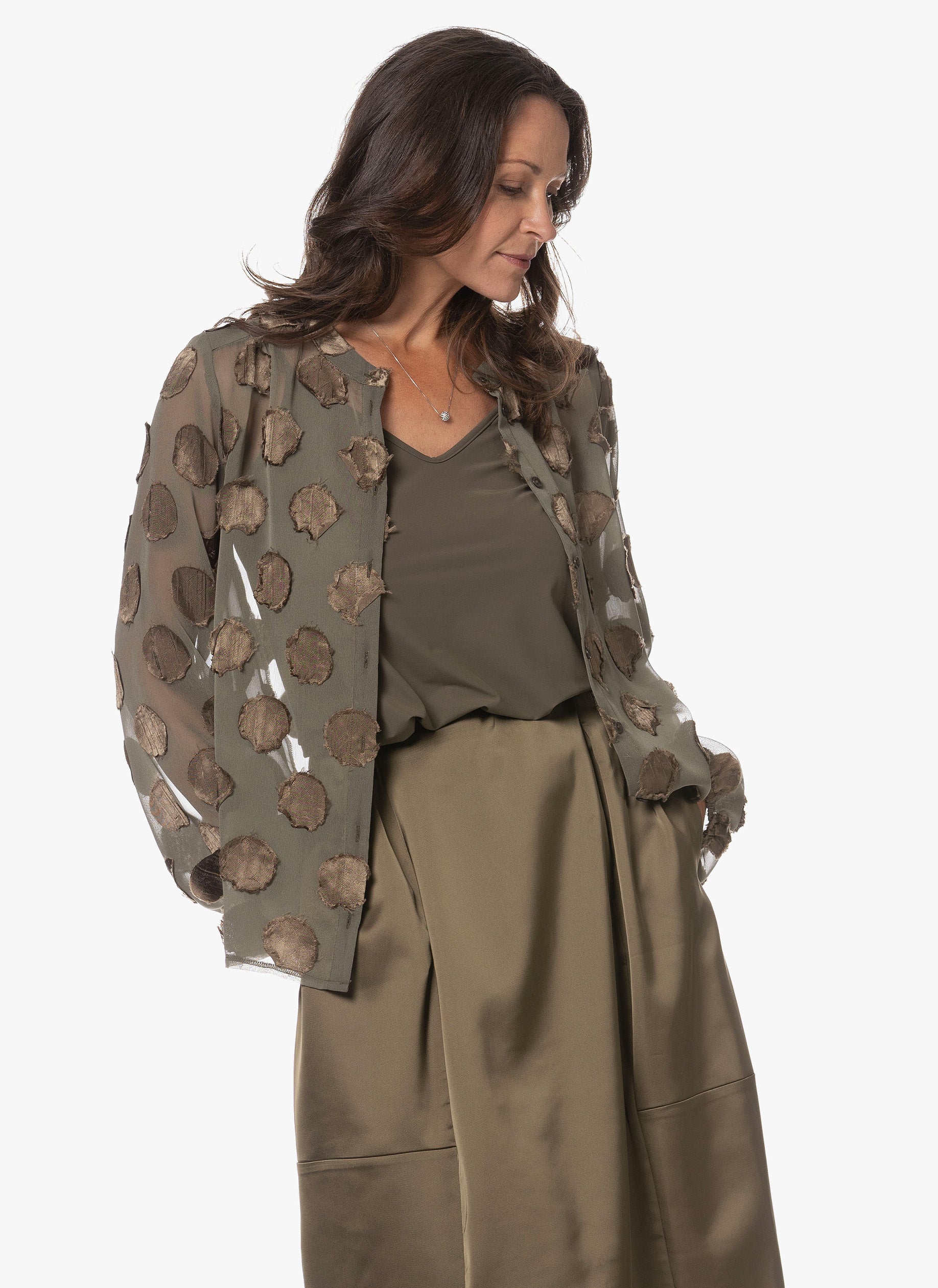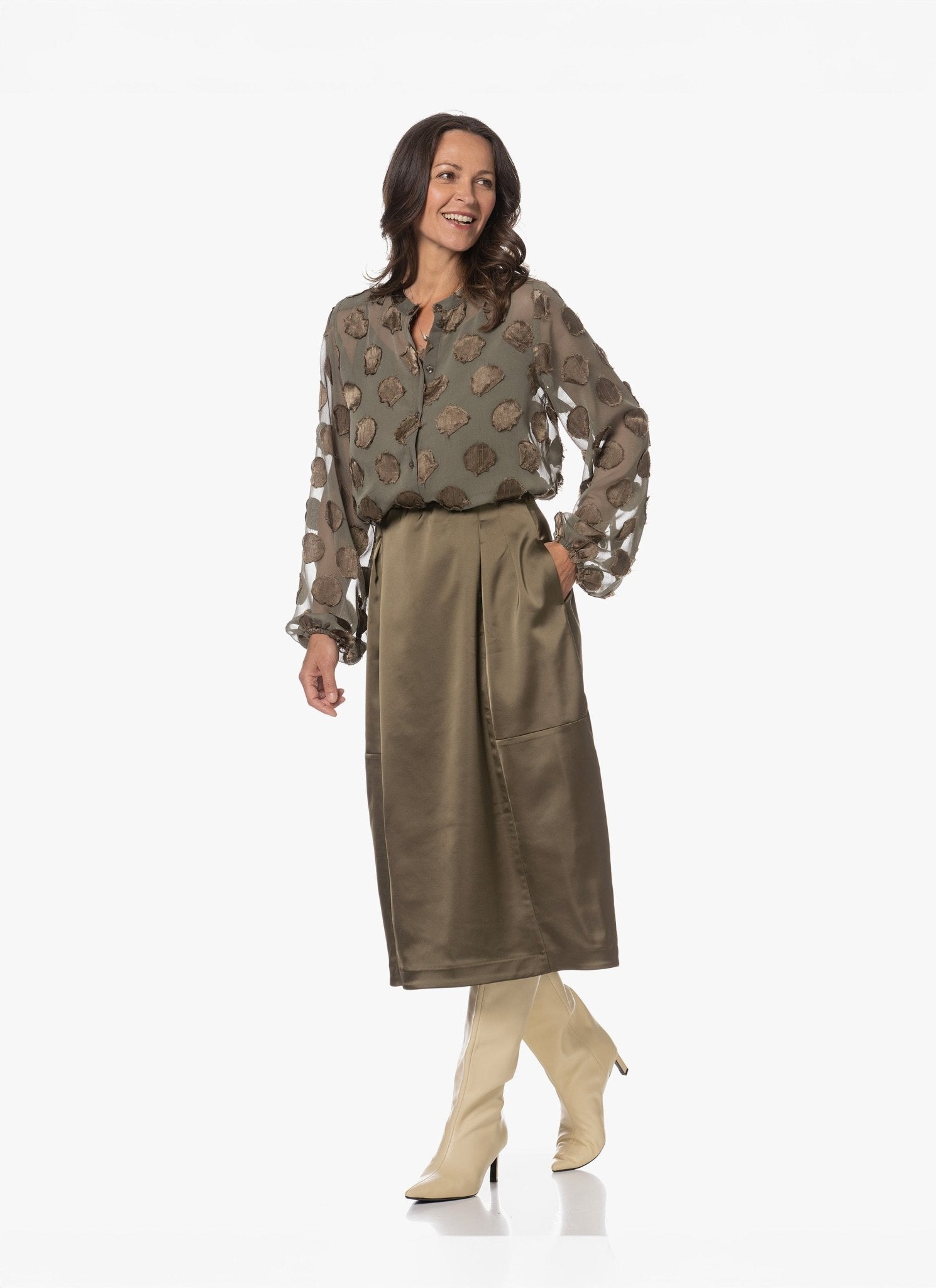 Blouse | Viscose Polyester | Tankuya | Olive Dot