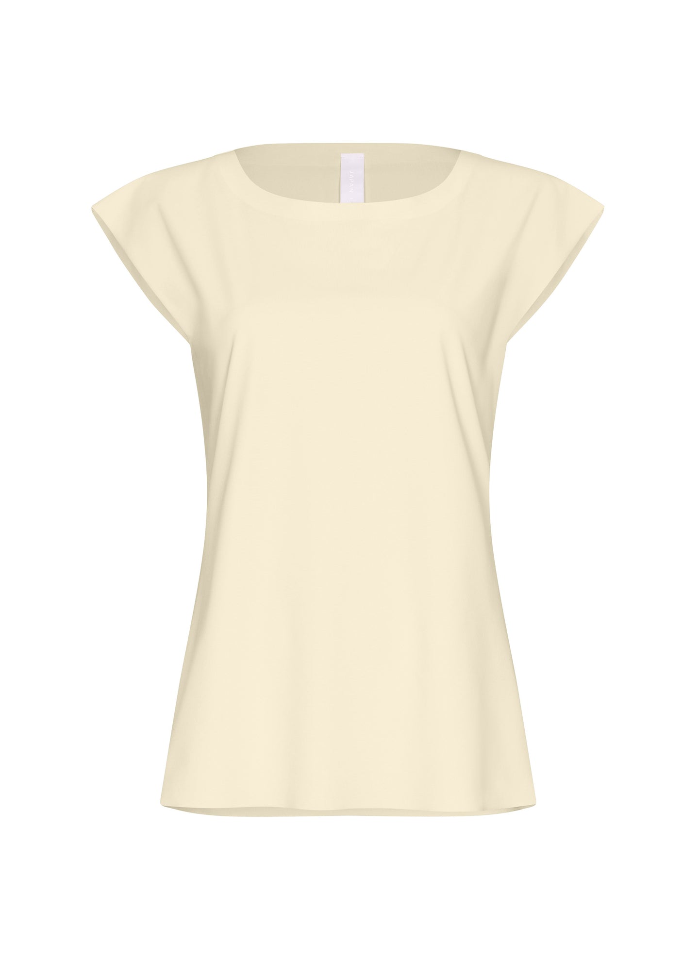 The Fuuki short-sleeve top in cream is a wardrobe essential, offering a fitted silhouette and a flattering round neckline. Made from premium travel jersey fabric, it provides exceptional comfort and ease, making it perfect for both everyday wear and travel. Stylish and functional, this top is ideal for any occasion.