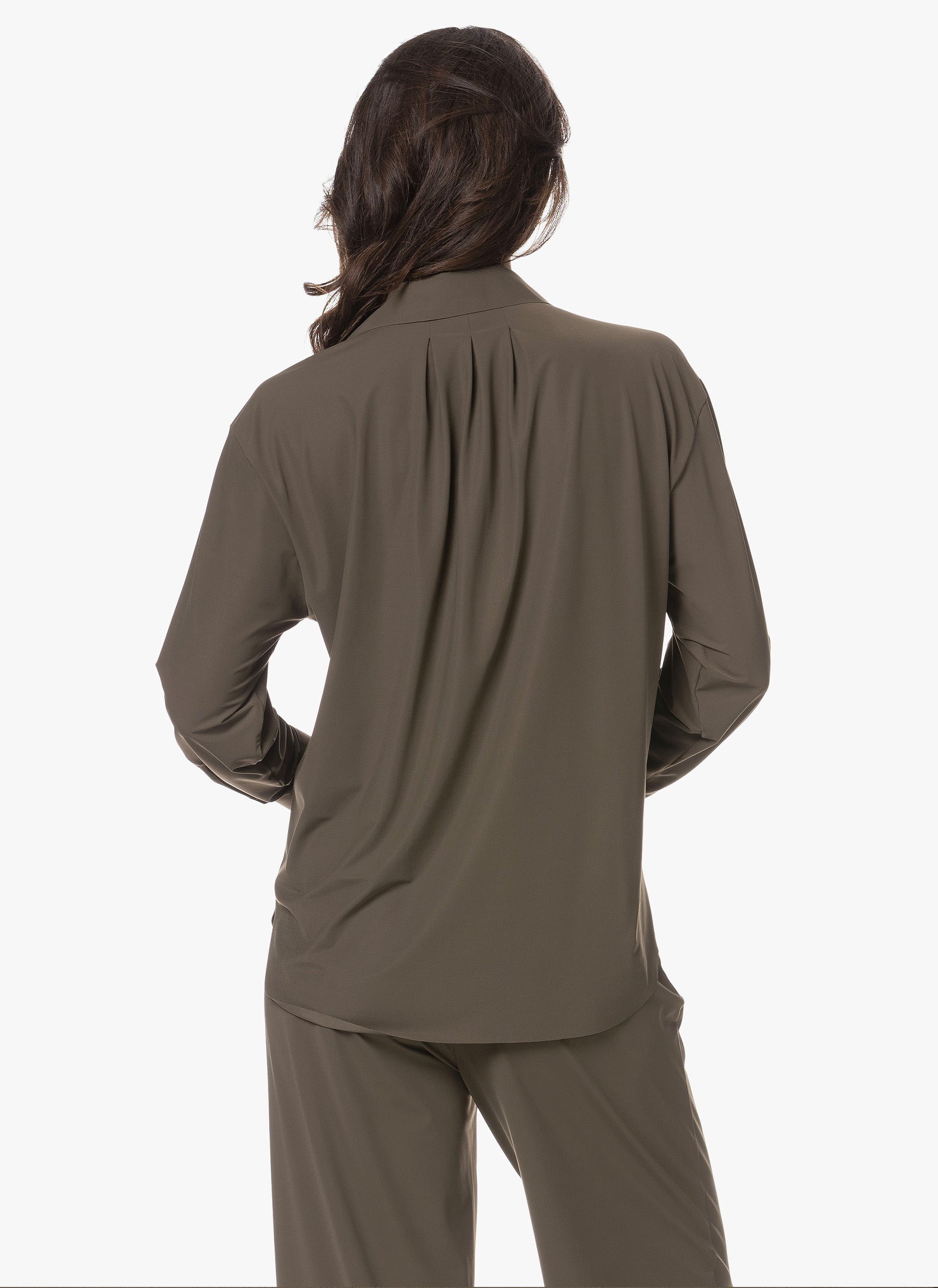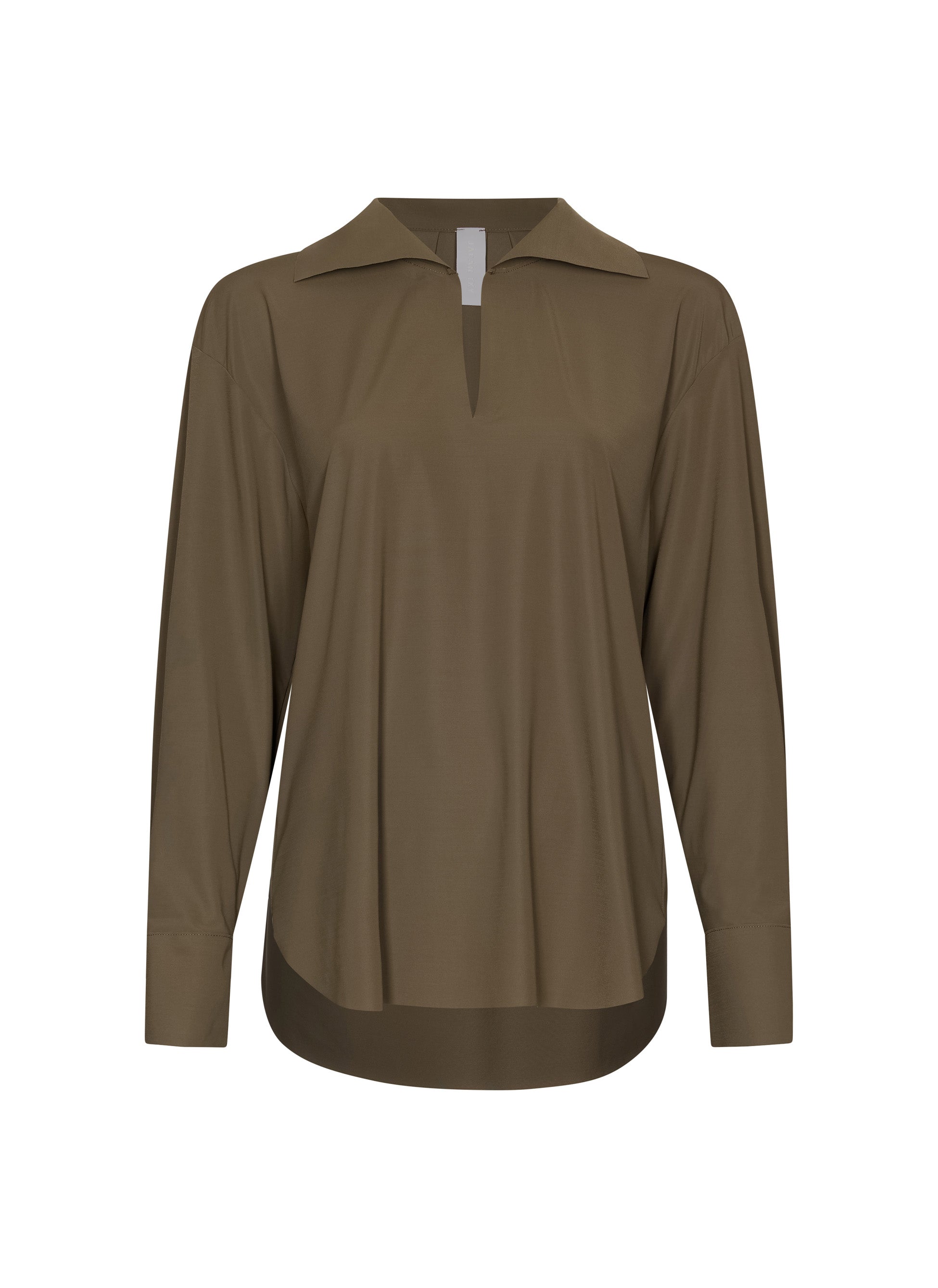 Combine comfort with style in the Usumi blouse. Made from light travel jersey, this top features a split neckline that highlights the relaxed fit. Pleats at the back add elegant drape, making it easy to pair with a variety of trousers.